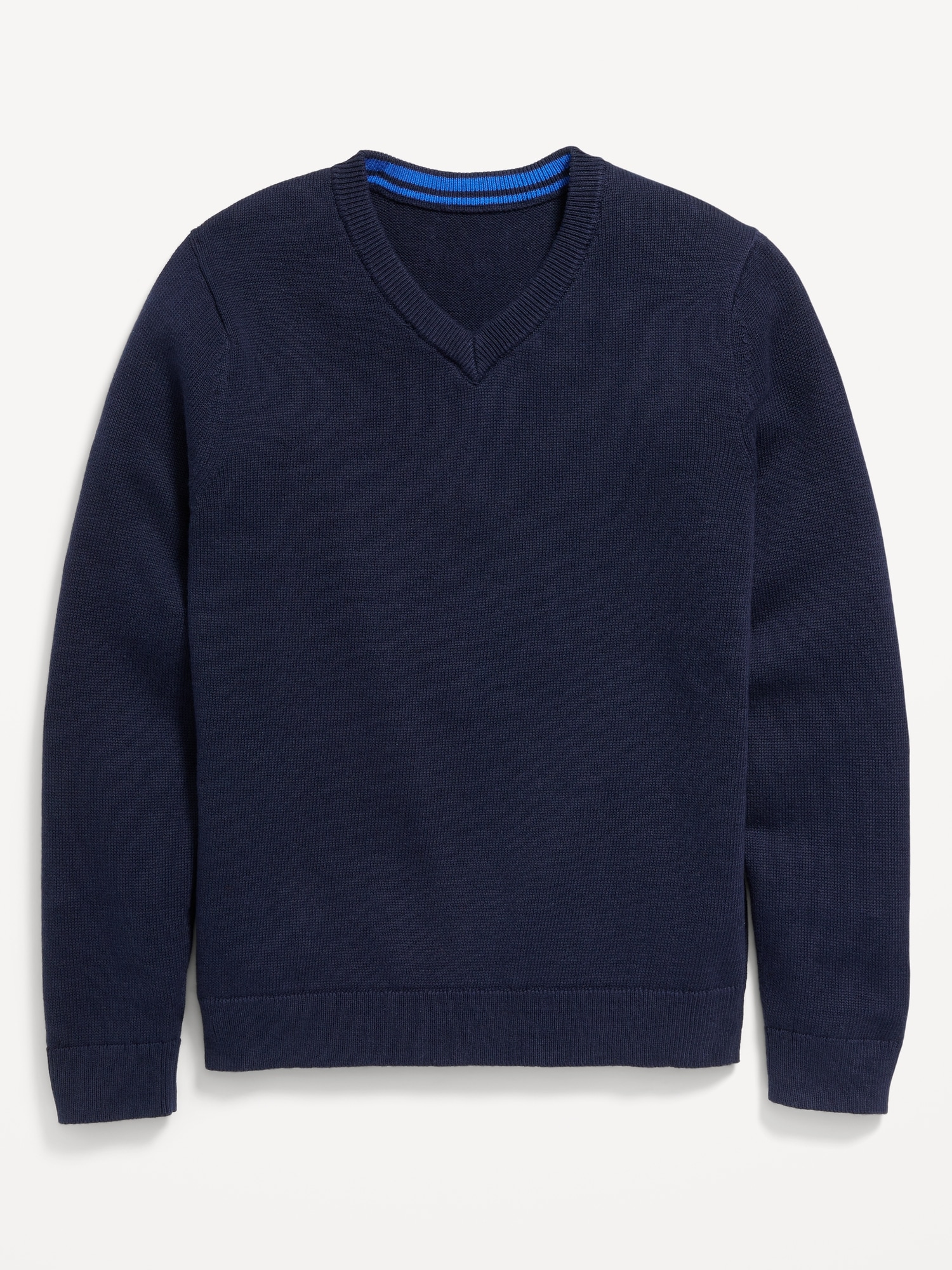 School Uniform Solid V-Neck Sweater for Boys: Uniform Guarantee: Uniforms may be returned for a full refund with the original receipt for 365 days from the date of purchase.rib-knit v-neck, long sleeves, online exclusive, #599132
