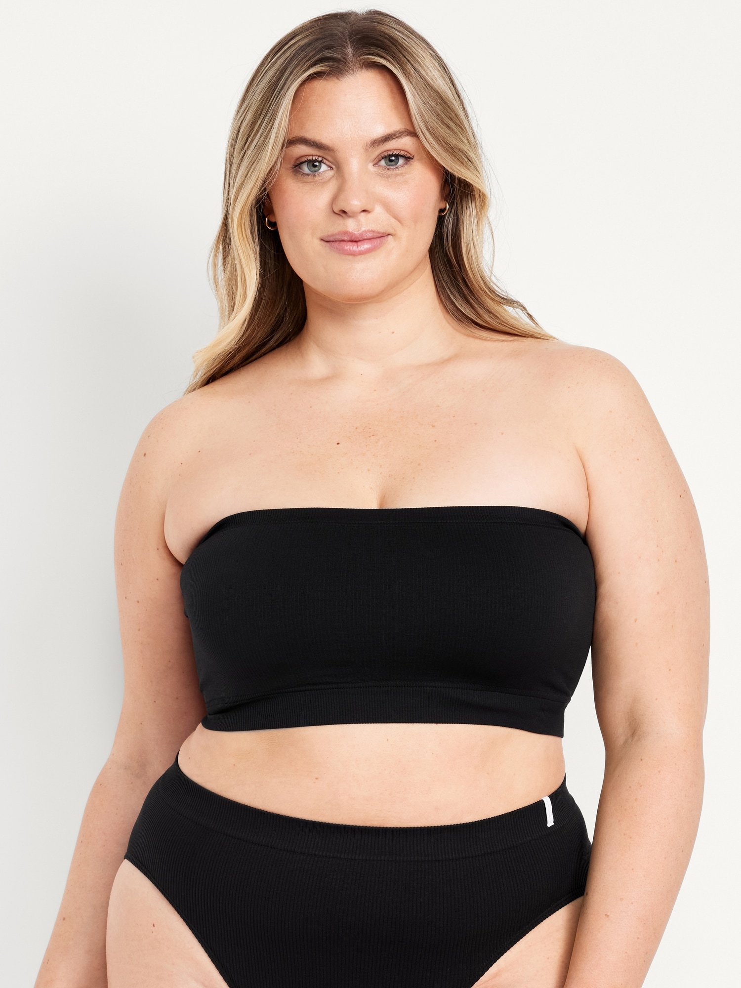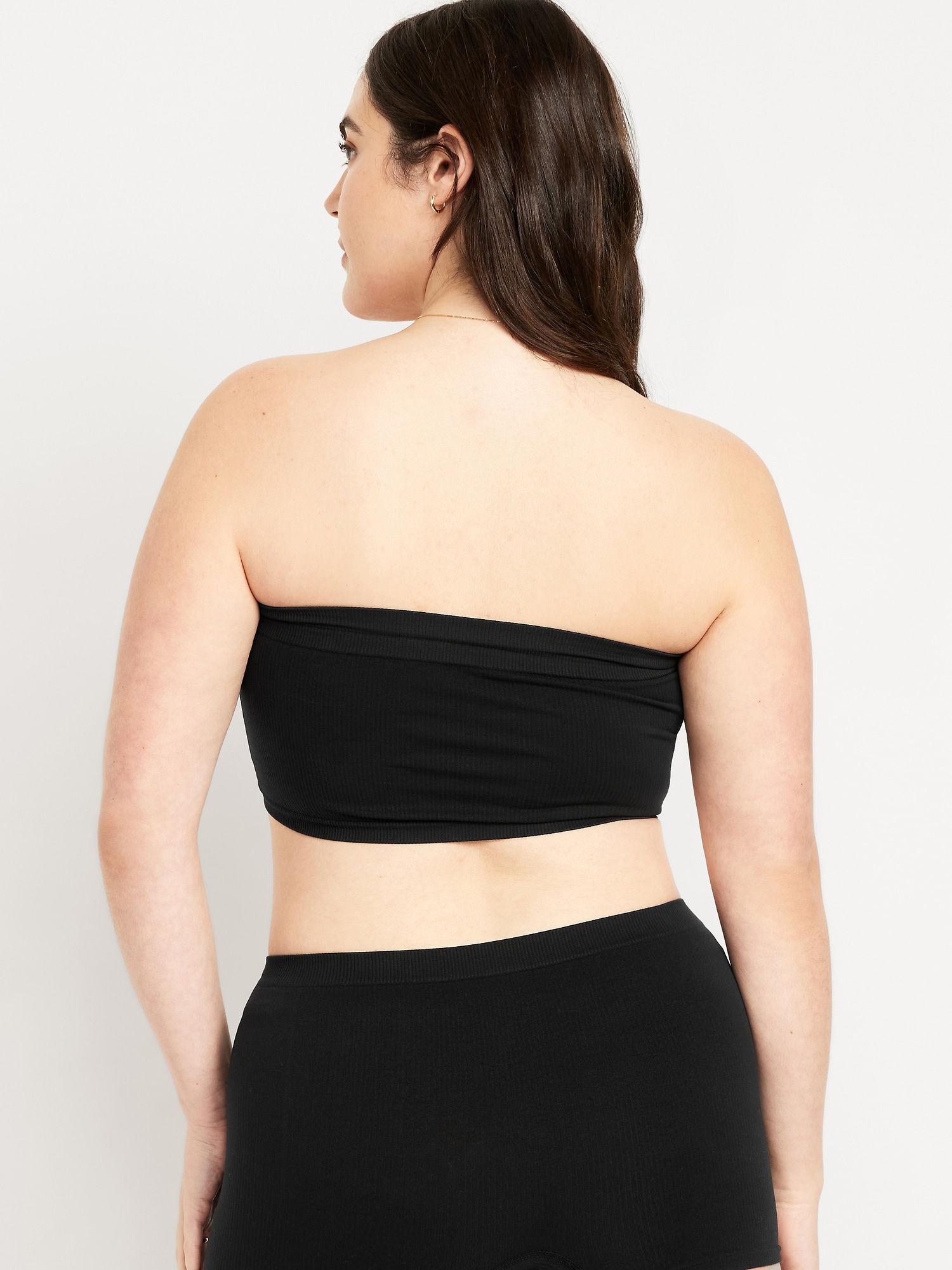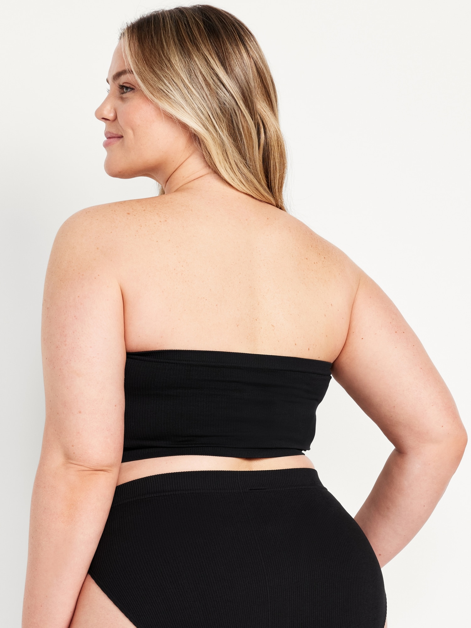 Seamless Ribbed Longline Bandeau Bra: Smooth, soft nylon for barely-there feels.strapless, #687038