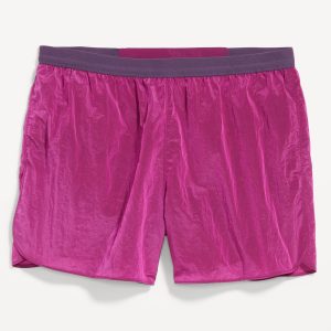 Shine Run Shorts — 5-inch inseam: elastic-drawstring waistband, back stash pocket with reflective trim, built-in briefs, vented sides, #766282