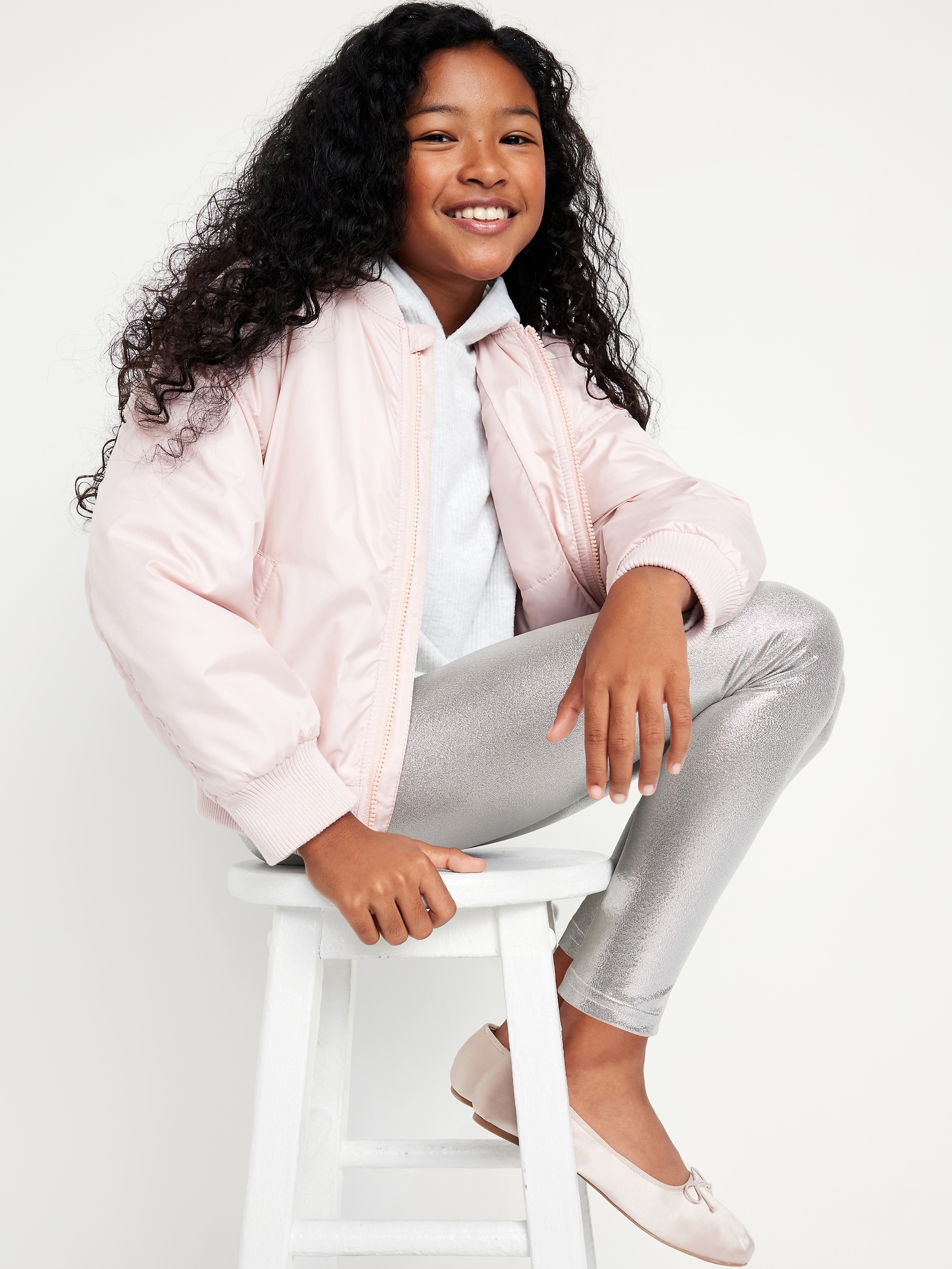 Shiny Foil Print Leggings for Girls: elasticized waistband, easy pull-on style, #889593