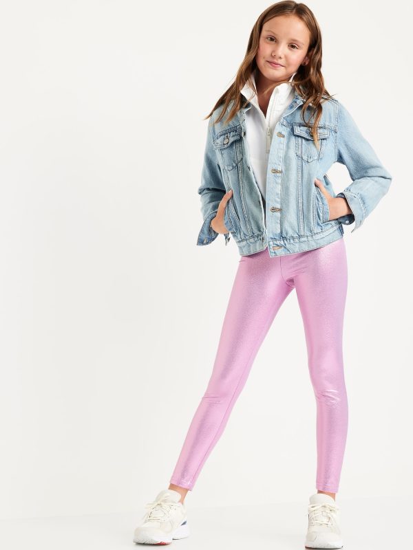 Shiny Foil Print Leggings for Girls: elasticized waistband, easy pull-on style, #889593
