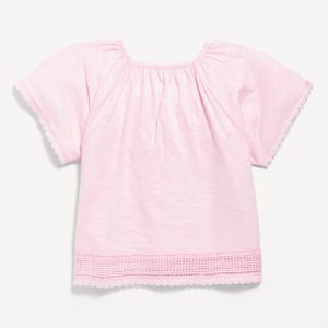Short Flutter-Sleeve Crochet-Trim Top for Girls
