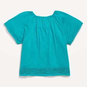 Short Flutter-Sleeve Crochet-Trim Top for Girls