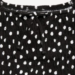 Short Puff-Sleeve Smocked Top for Girls: square neckline, short puff sleeves, smocked bodice, #767944