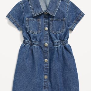 Short-Sleeve Cinched-Waist Jean Dress for Toddler Girls