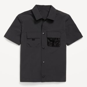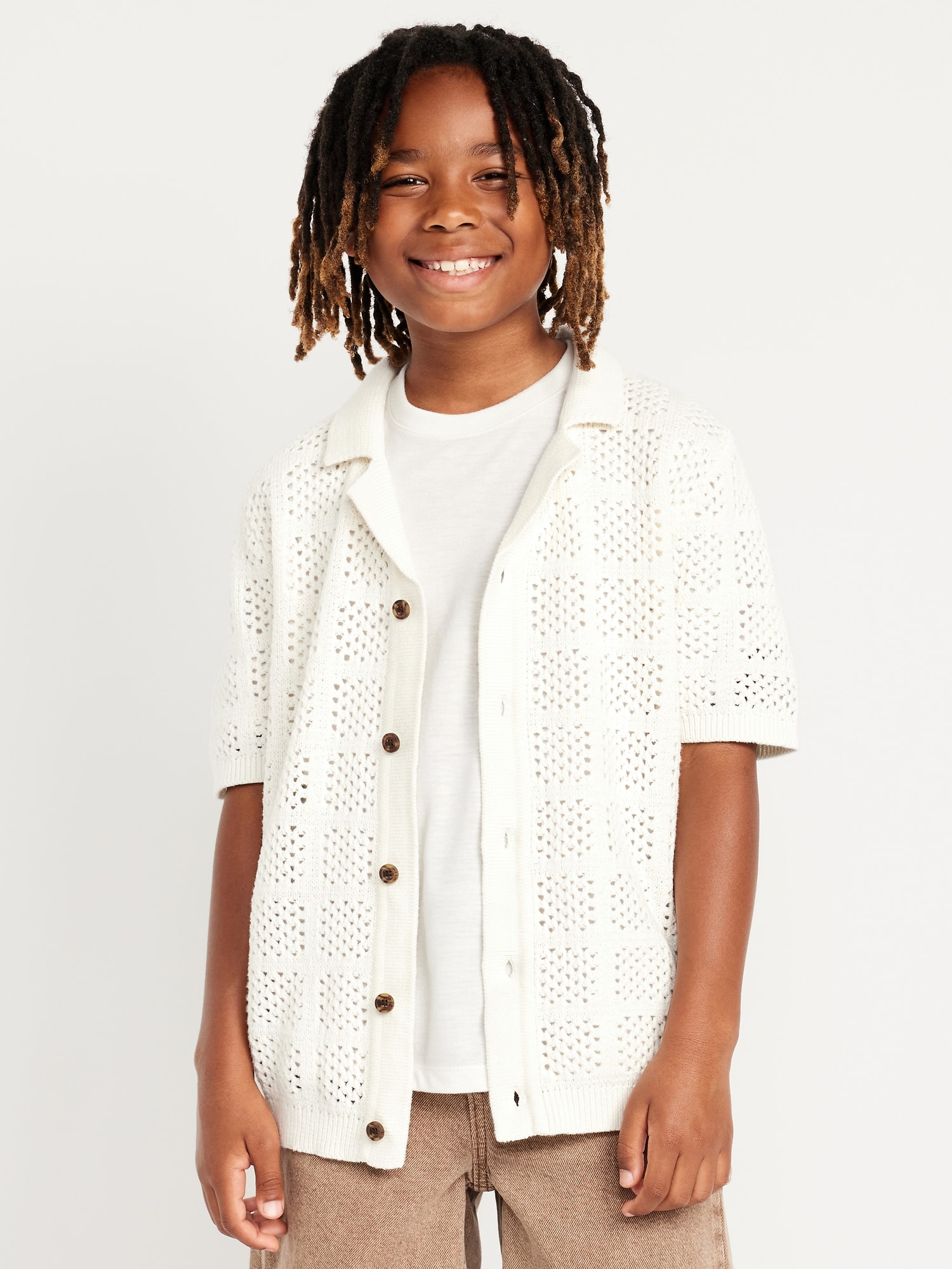 Short-Sleeve Crochet-Knit Shirt for Boys