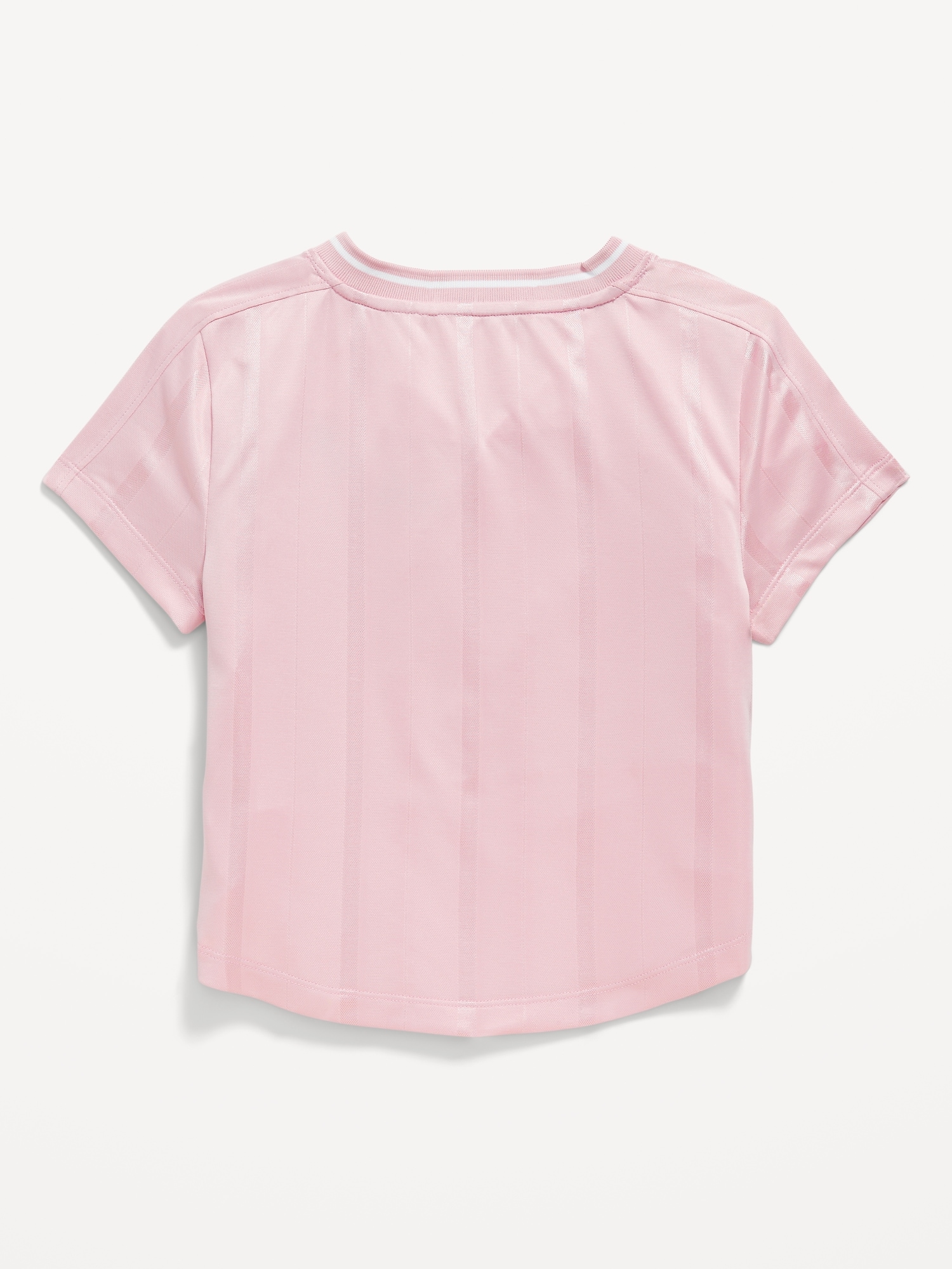 Short-Sleeve Graphic Jersey T-Shirt for Girls: v neck, short sleeves, graphic at front, rounded hem, #763221
