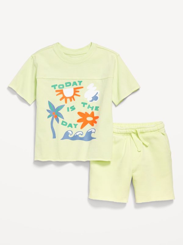 Short-Sleeve Graphic T-Shirt and Shorts Set for Toddler Boys