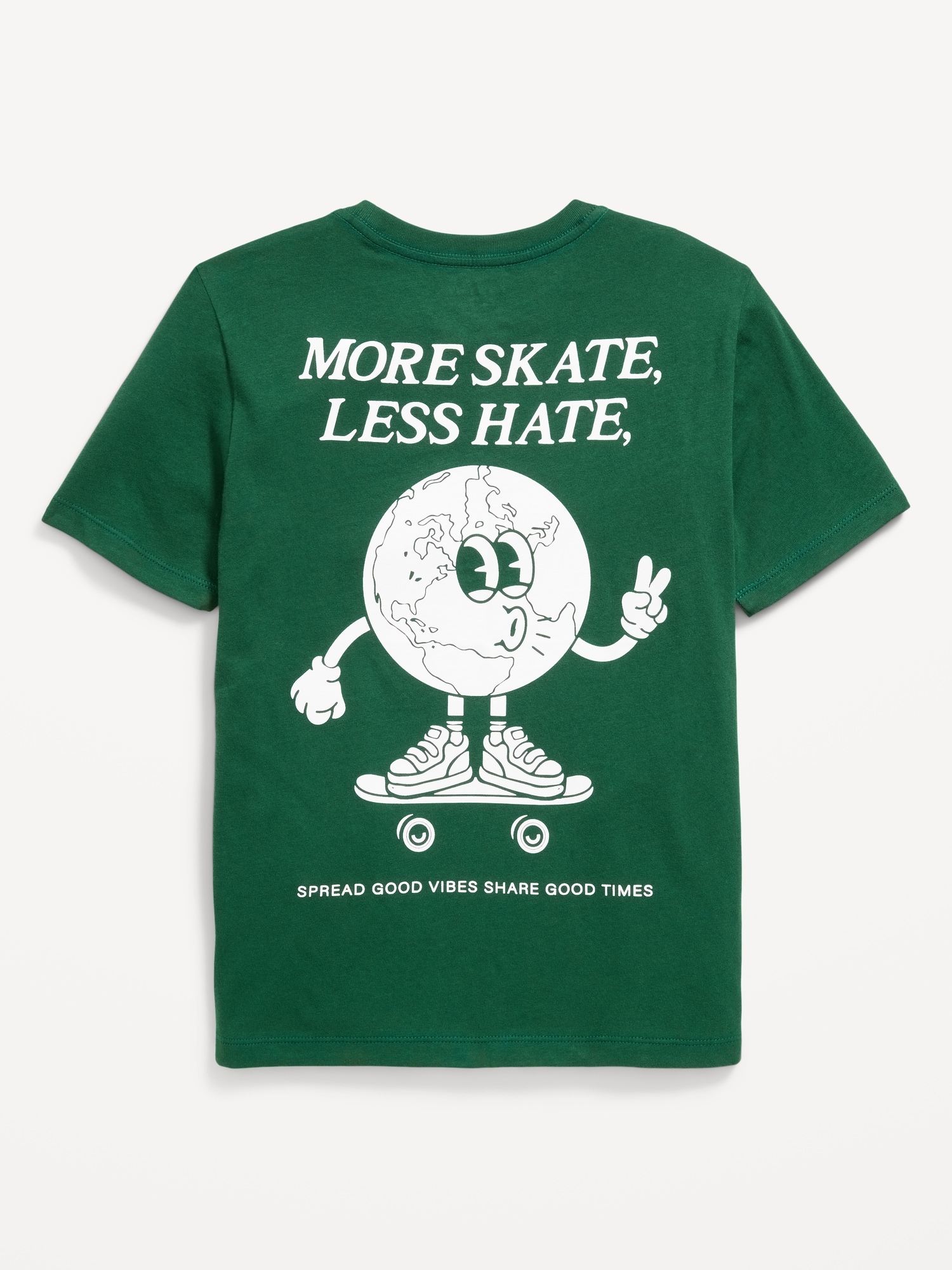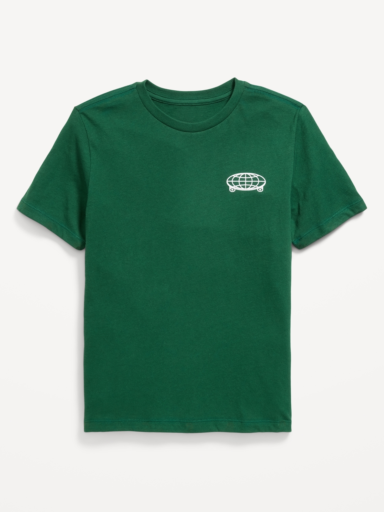 Short-Sleeve Graphic T-Shirt for Boys: crew neck, short sleeves, graphic at front, select colors: small-scale graphic at front and large scale graphic at back, #663027