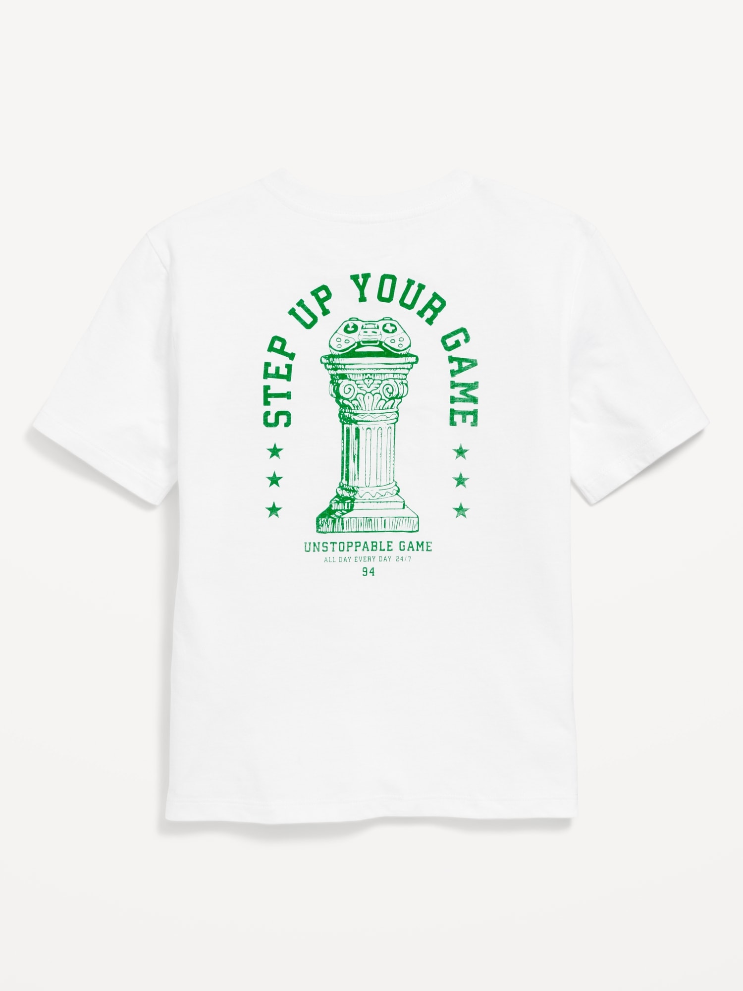 Short-Sleeve Graphic T-Shirt for Boys: crew neck, short sleeves, graphic at front, select colors: small-scale graphic at front and large scale graphic at back, #663027