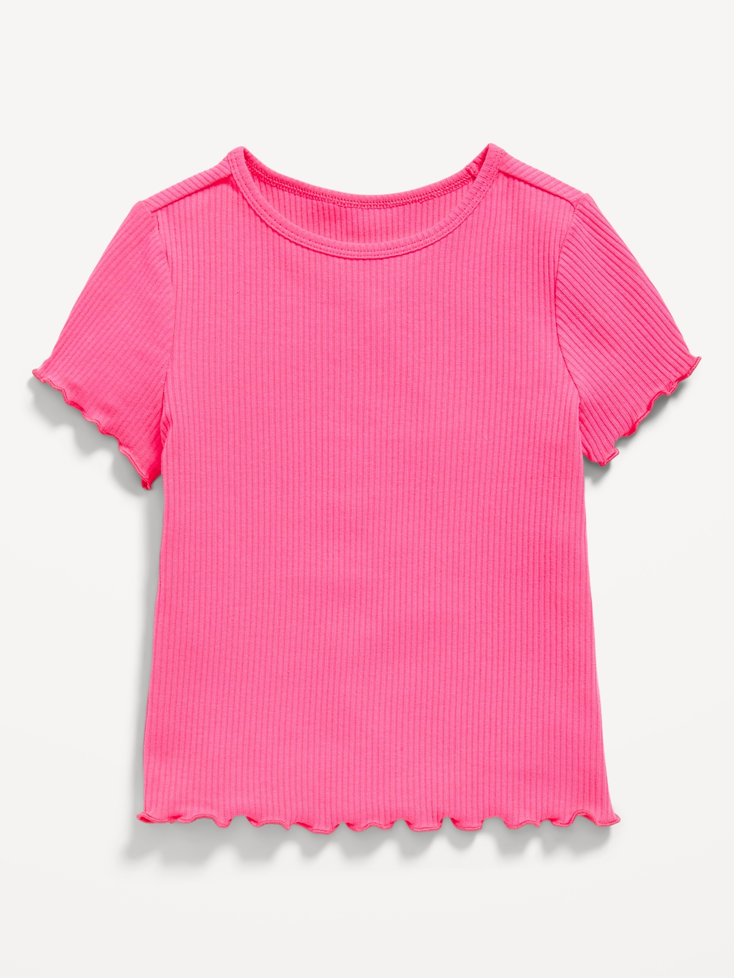 Short-Sleeve Lettuce-Edge Ribbed T-Shirt for Toddler Girls: Mix Match Go Productcrew neck, short sleeves, drop shoulders, #690518