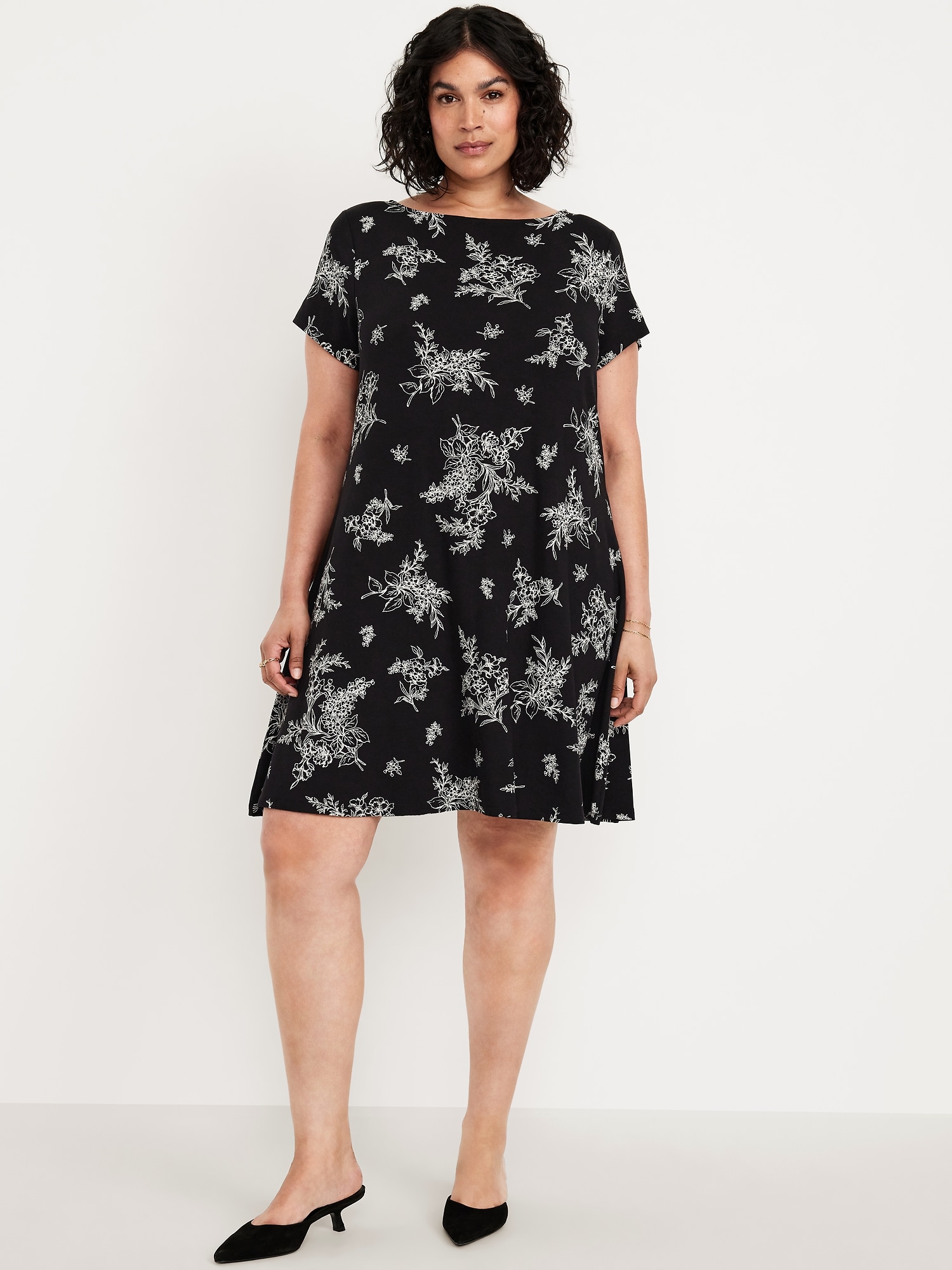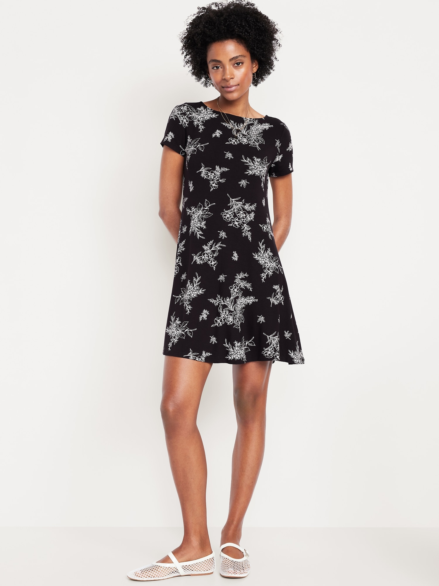 Short-Sleeve Mini Swing Dress