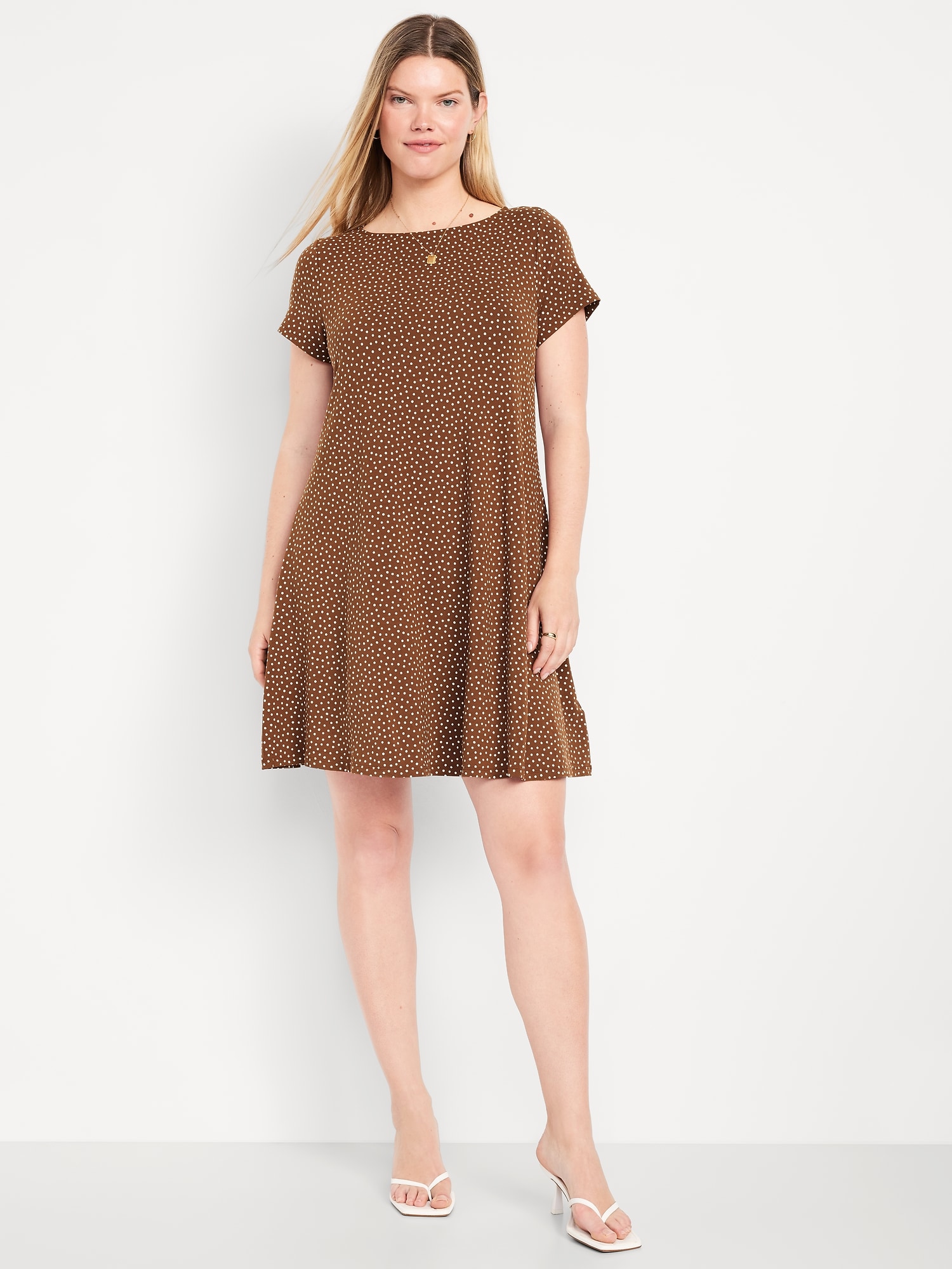Short-Sleeve Mini Swing Dress: crew neck, short sleeves, available exclusively online or at outlet stores, #808844