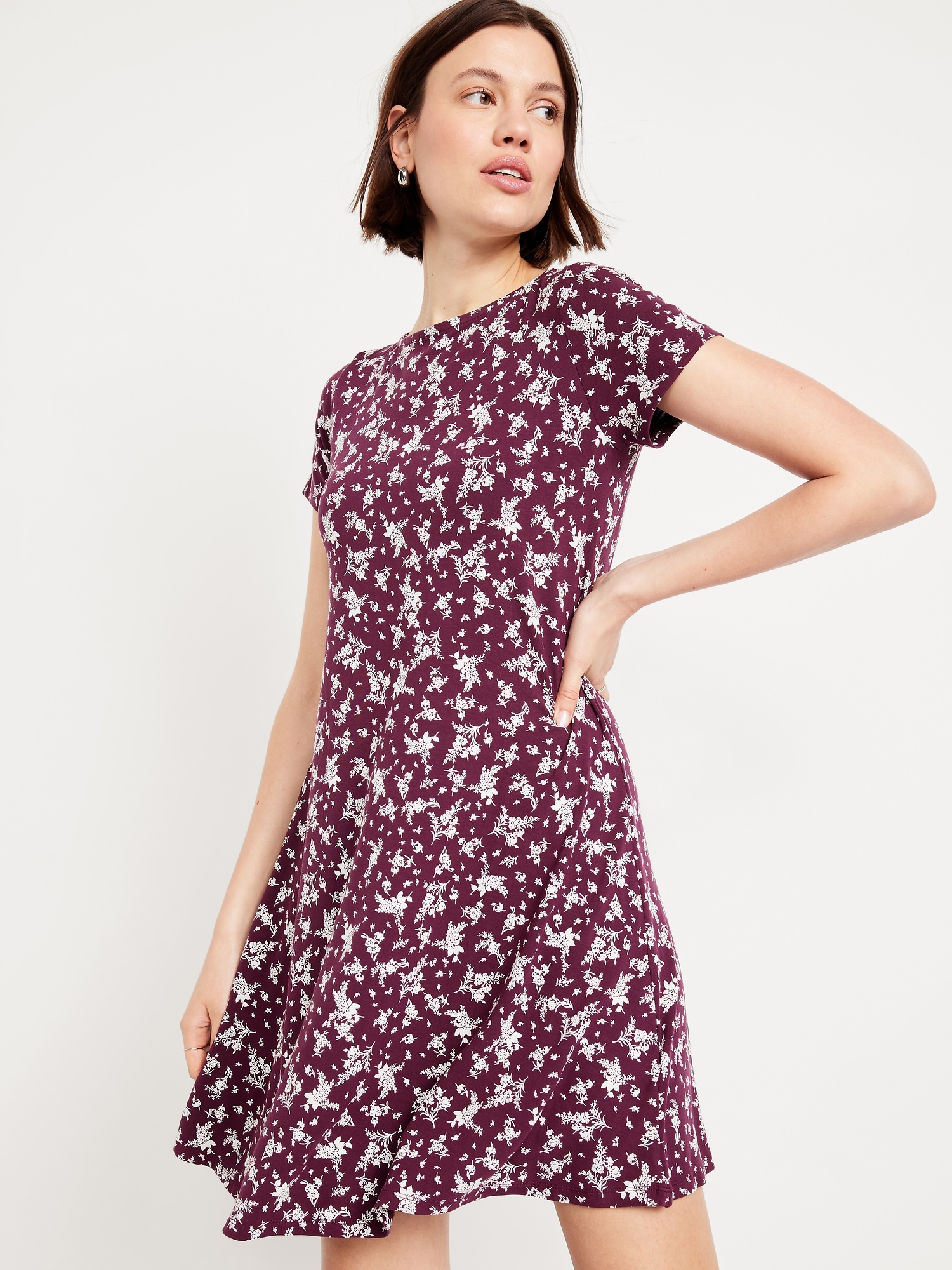 Short-Sleeve Mini Swing Dress