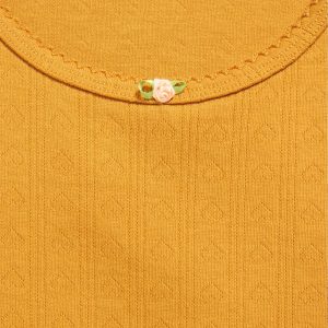 Short-Sleeve Pointelle-Knit Top for Girls: crew neck, picot trim along neckline, short sleeves, all-over floral print, #766971