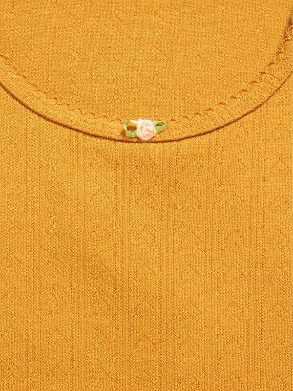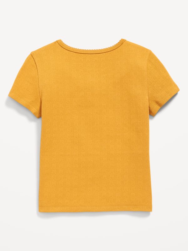 Short-Sleeve Pointelle-Knit Top for Girls: crew neck, picot trim along neckline, short sleeves, all-over floral print, #766971