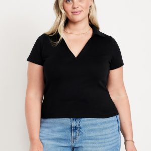 Short-Sleeve Polo: spread v-neck collar, short sleeves, striped print, #802261