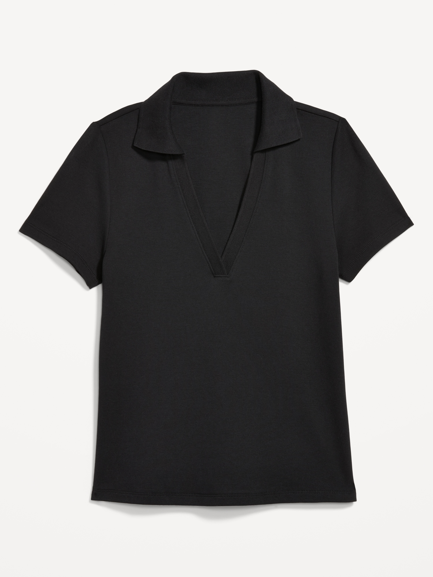 Short-Sleeve Polo: spread v-neck collar, short sleeves, striped print, #802261