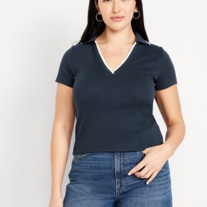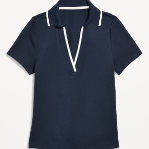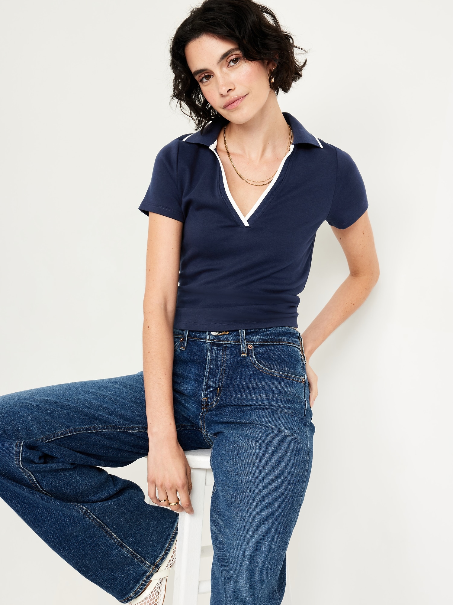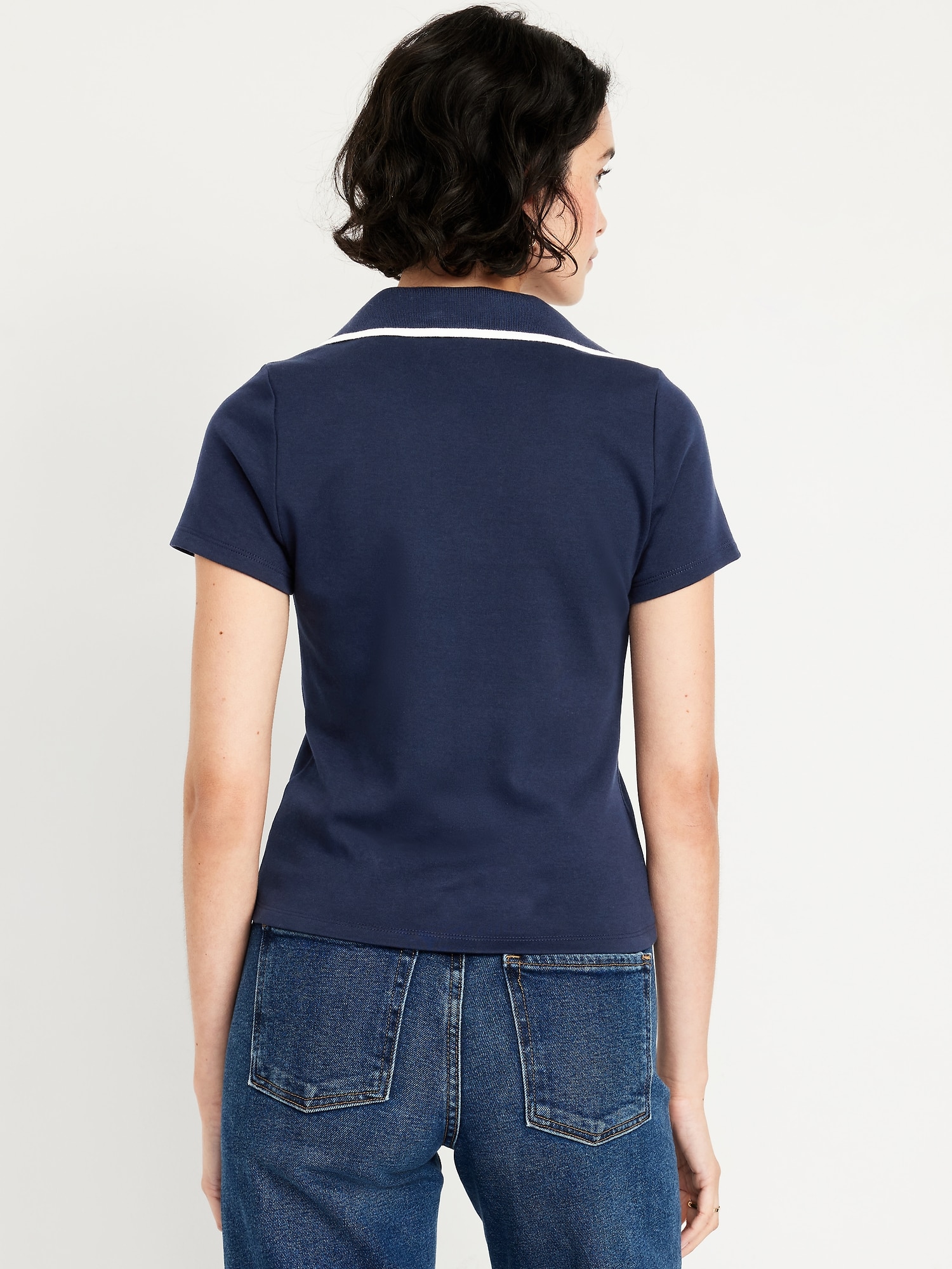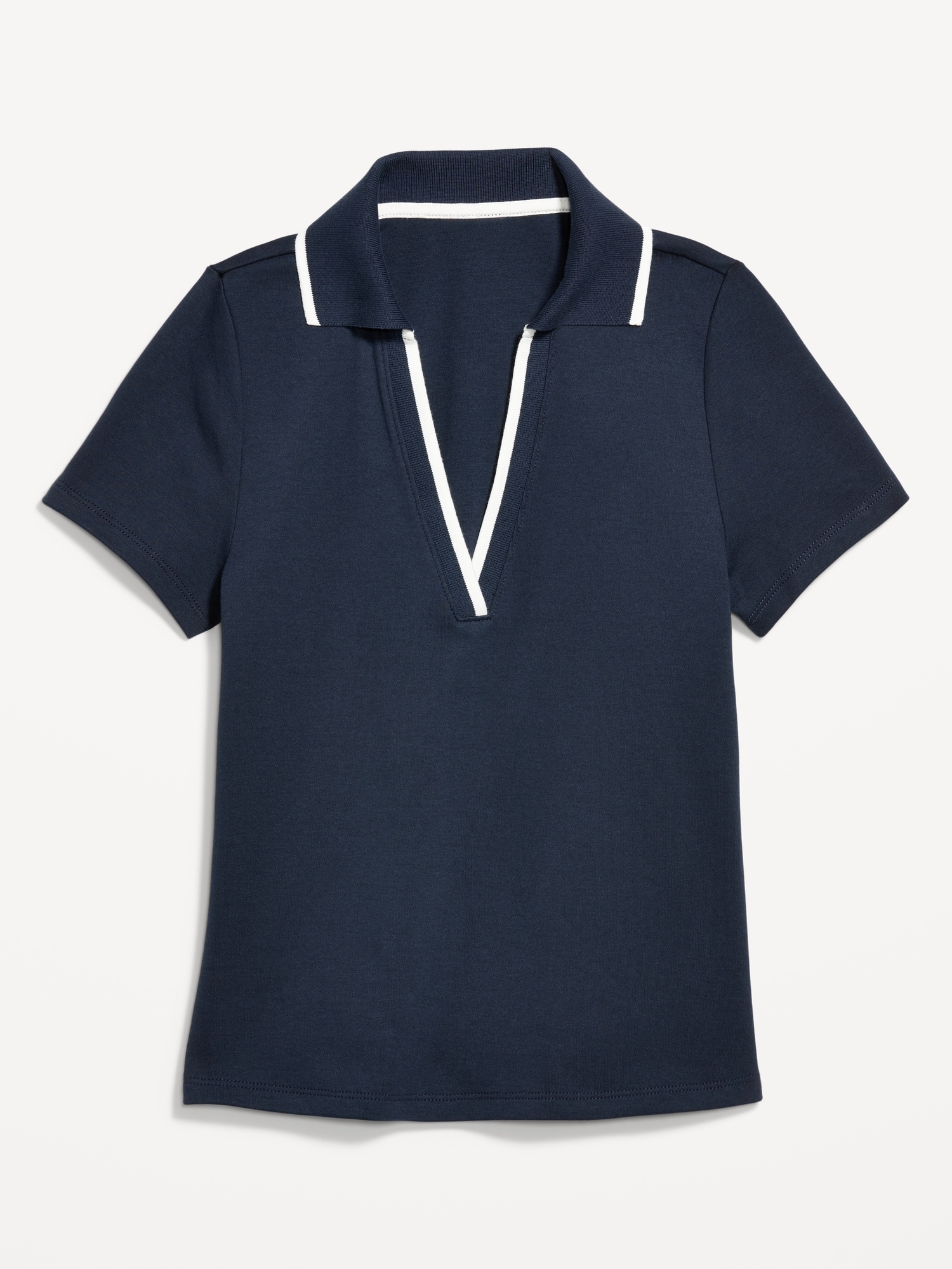 Short-Sleeve Polo: spread v-neck collar, short sleeves, striped print, #802261