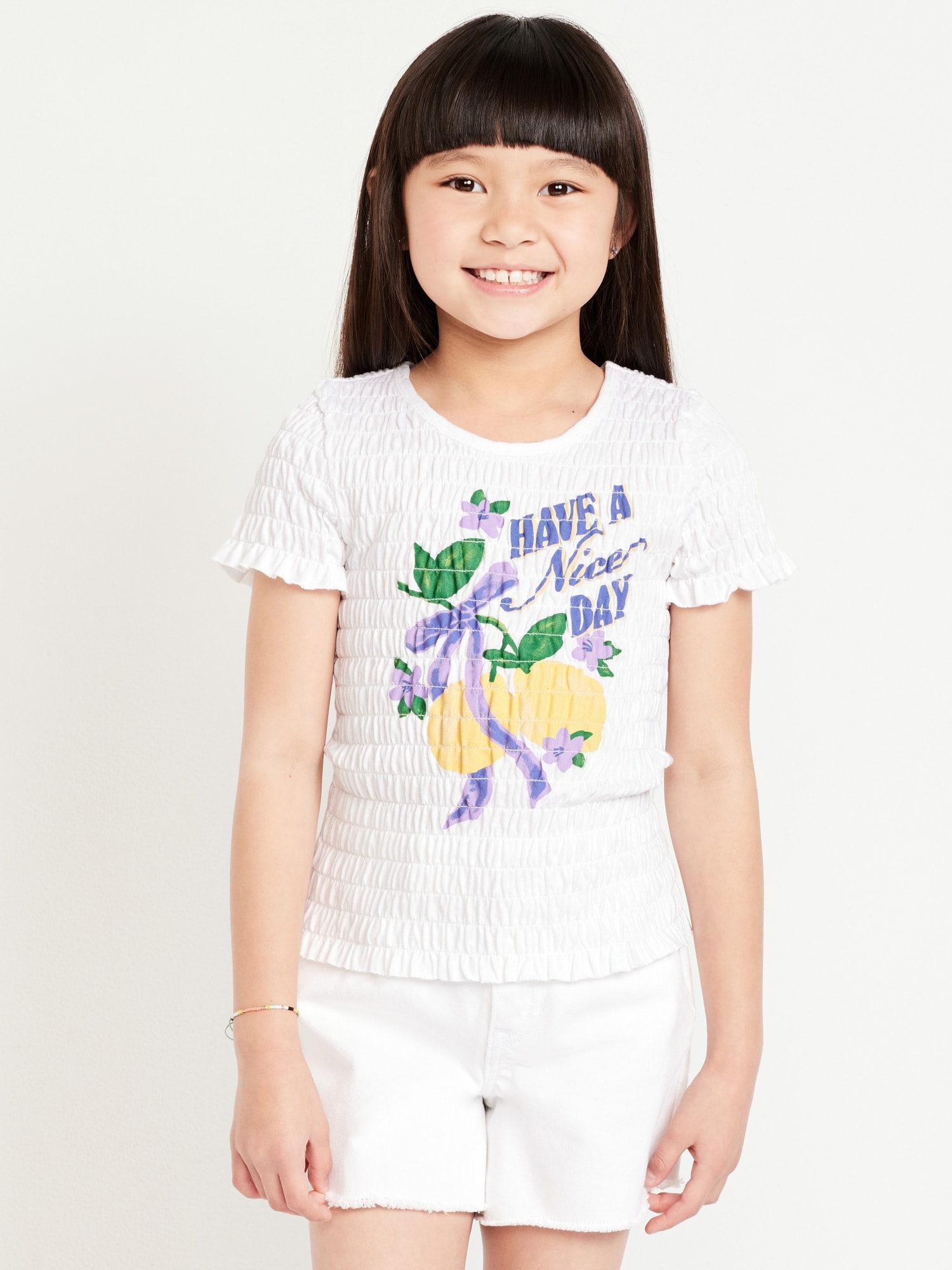 Short-Sleeve Smocked Graphic T-Shirt for Girls
