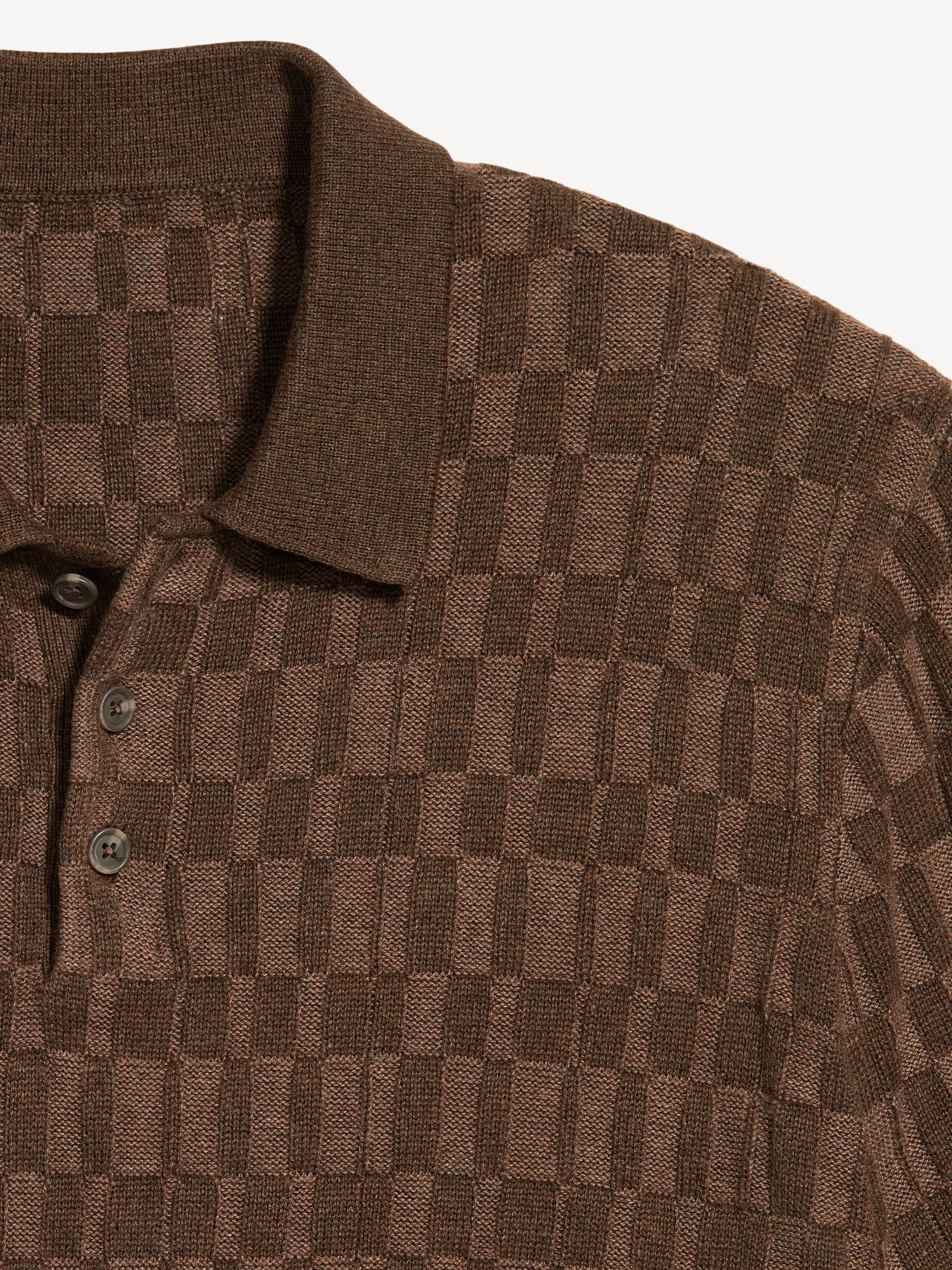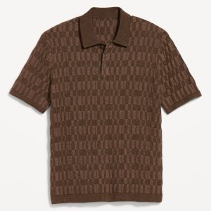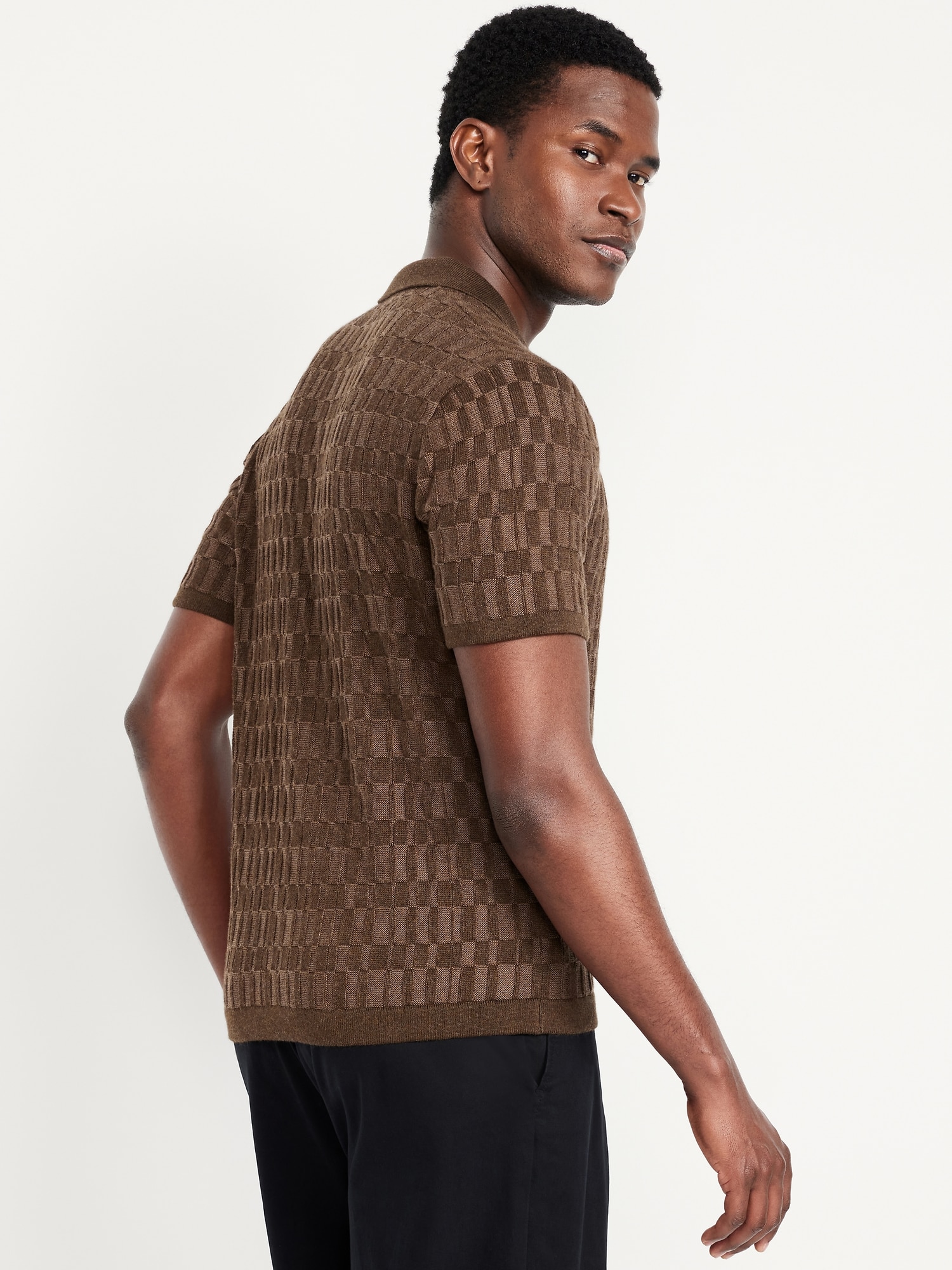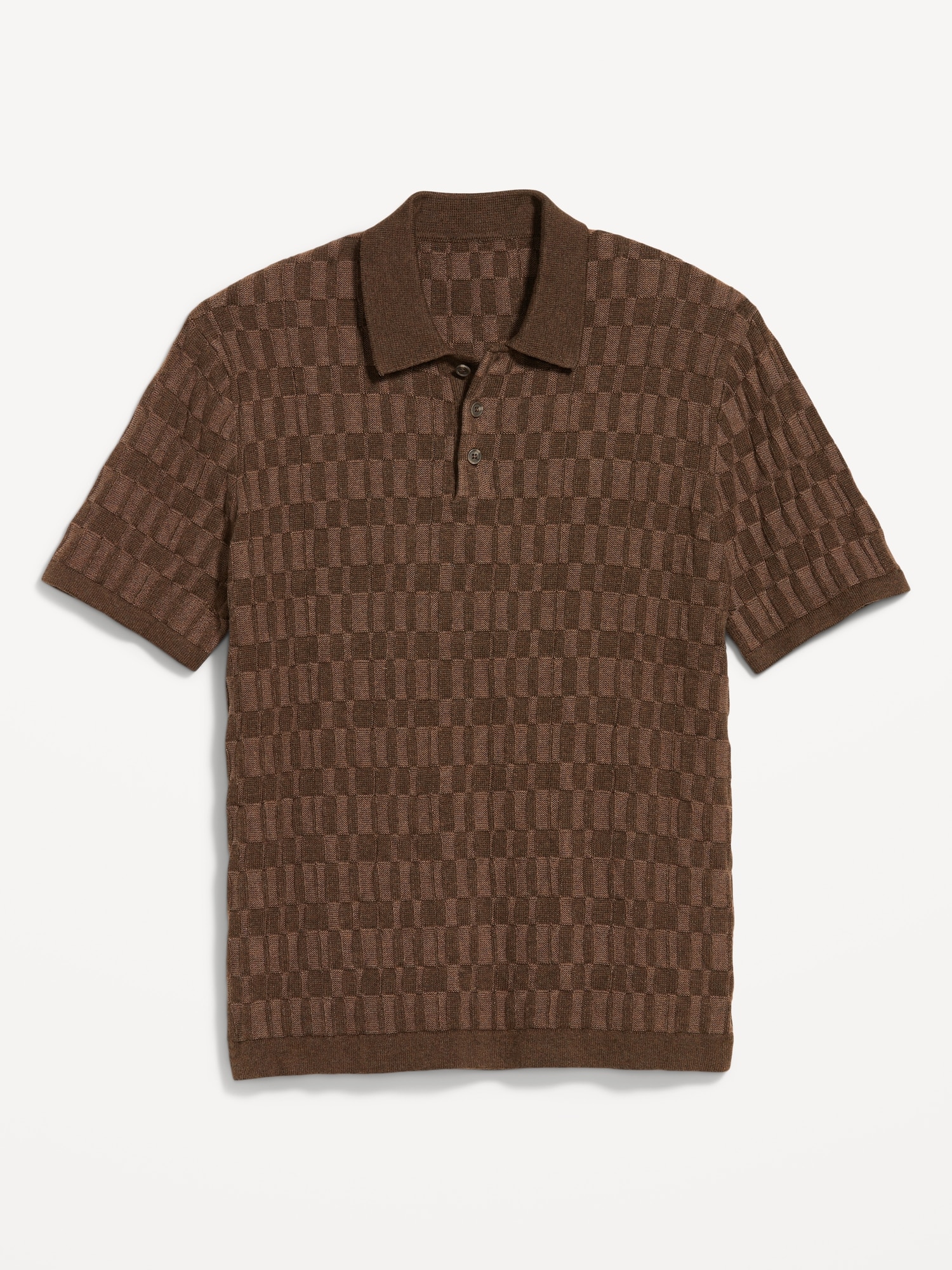 Short-Sleeve Sweater-Knit Polo: spread collar, short sleeves, buttoned placket, pullover style, #802042