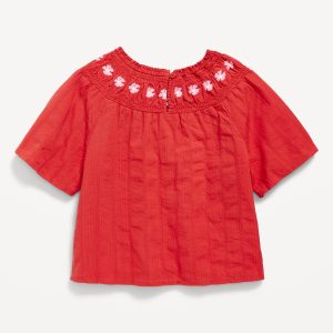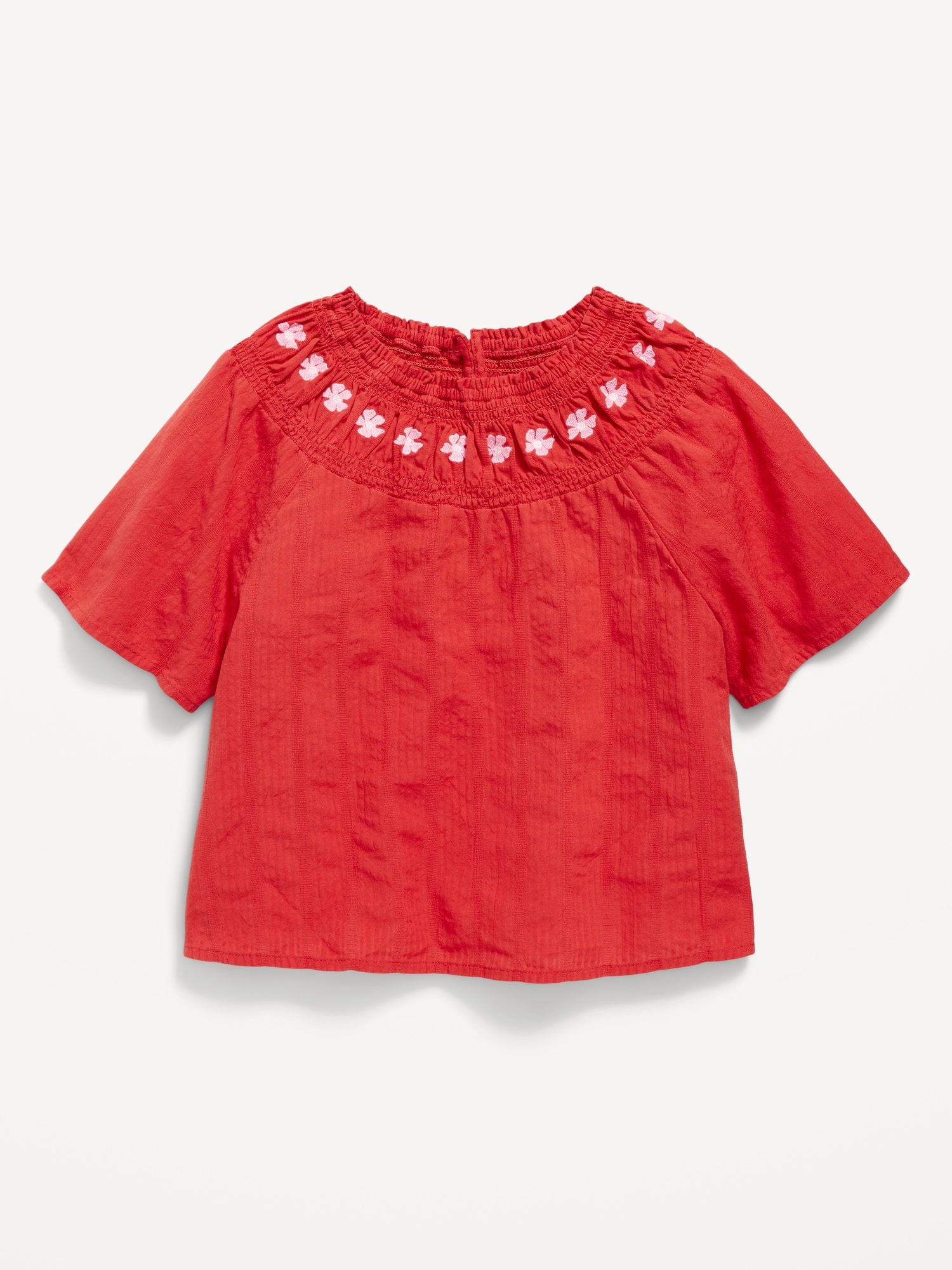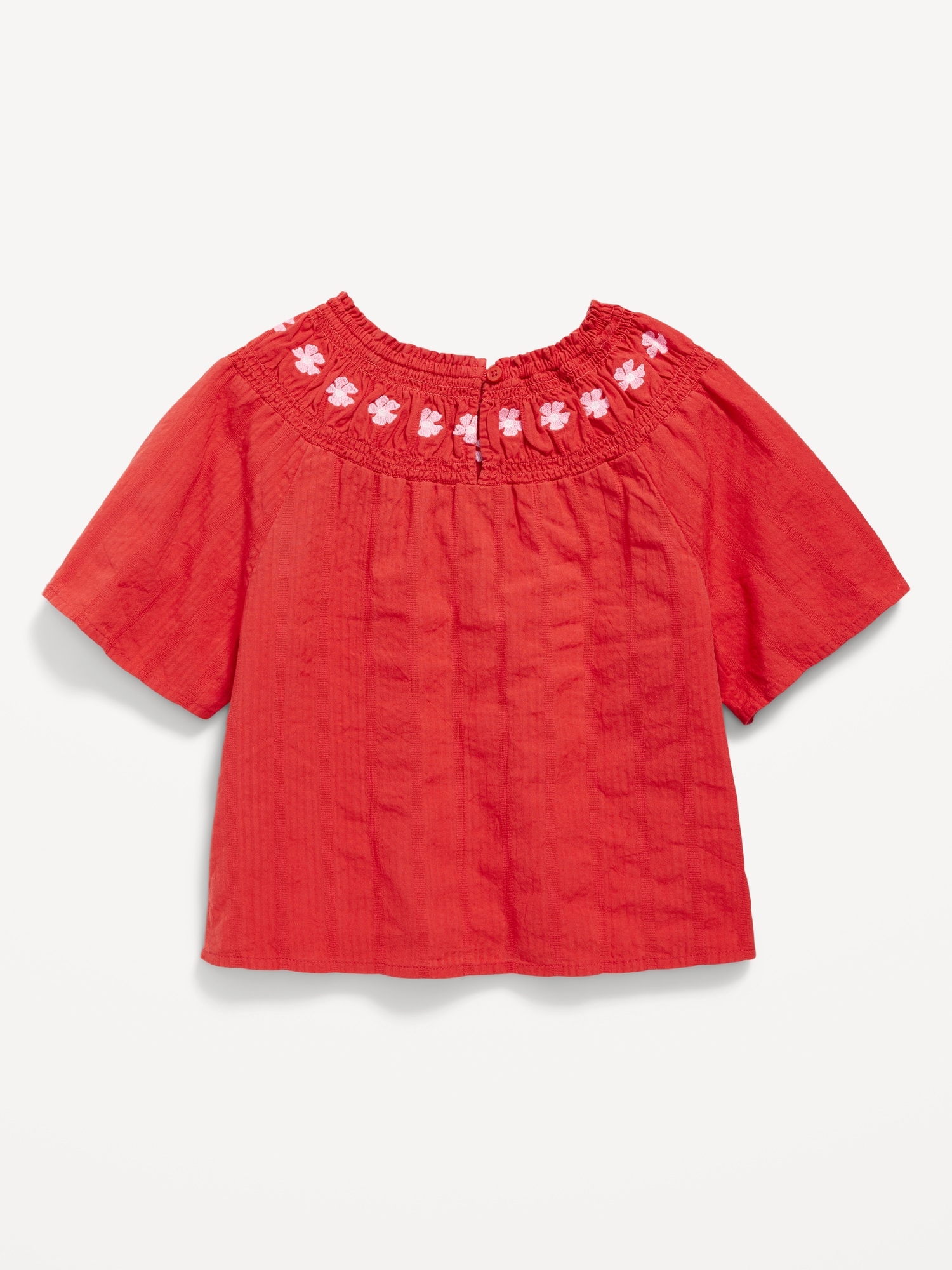 Short-Sleeve Textured Embroidered Top for Girls