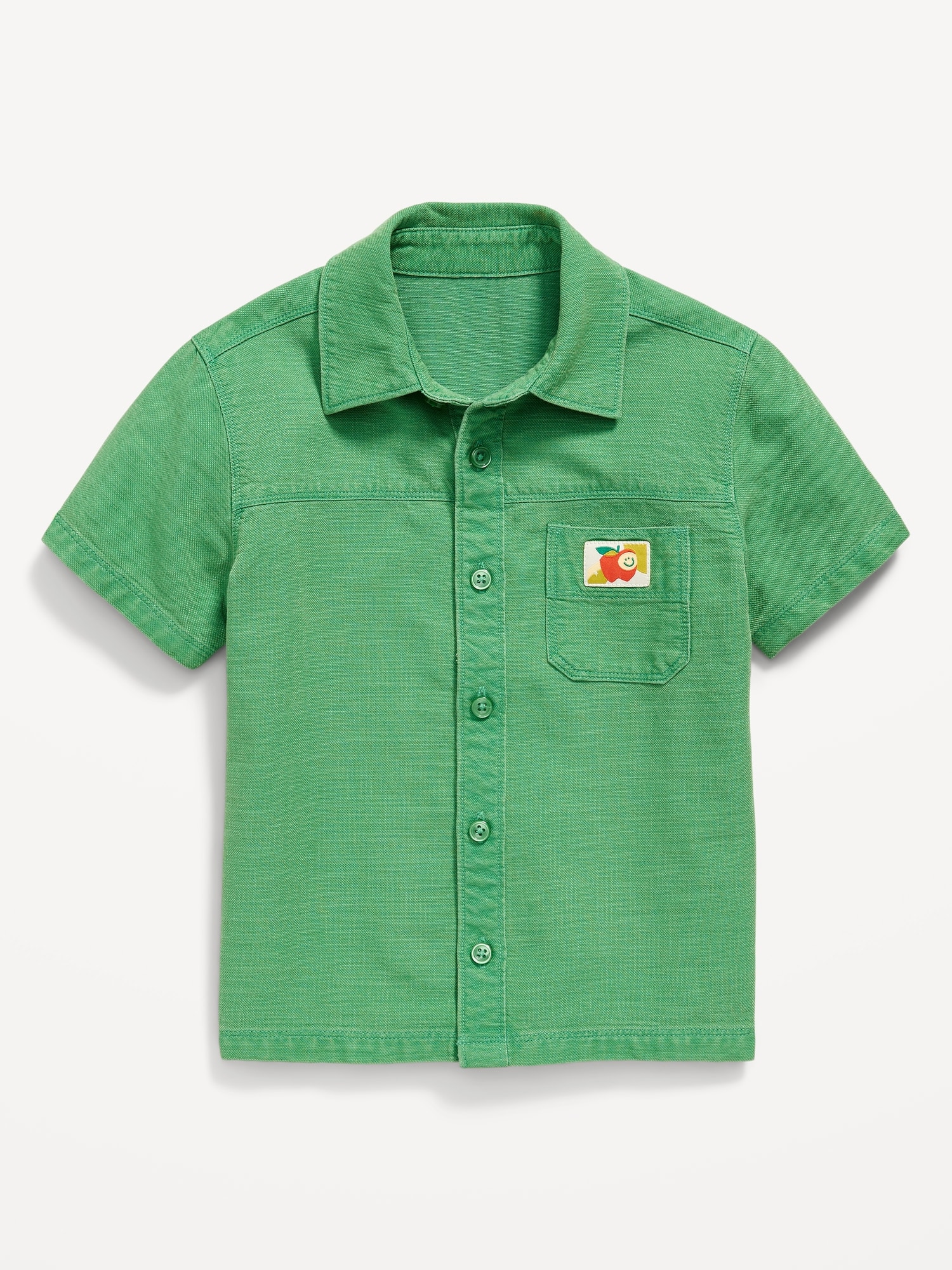 Short-Sleeve Utility Pocket Shirt for Toddler Boys: pointed collar, short sleeves, drop shoulders, utility patch pocket at chest, full length buttoned placket, #752762