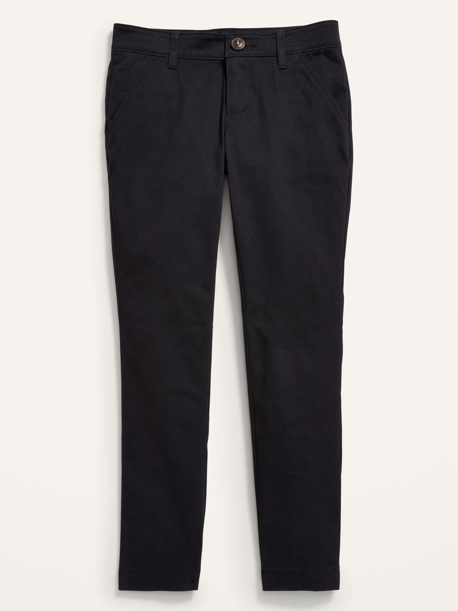 Skinny School Uniform Pants for Girls: Uniform Guarantee: Uniforms may be returned for a full refund with the original receipt for 365 days from the date of purchase.interior adjustable waistband expands, snap-button closure in sizes 5-8, regular button closure in sizes 10-20, zip fly, flat front, diagonal on-seam pockets, decorative welt faux pockets in back, #877990