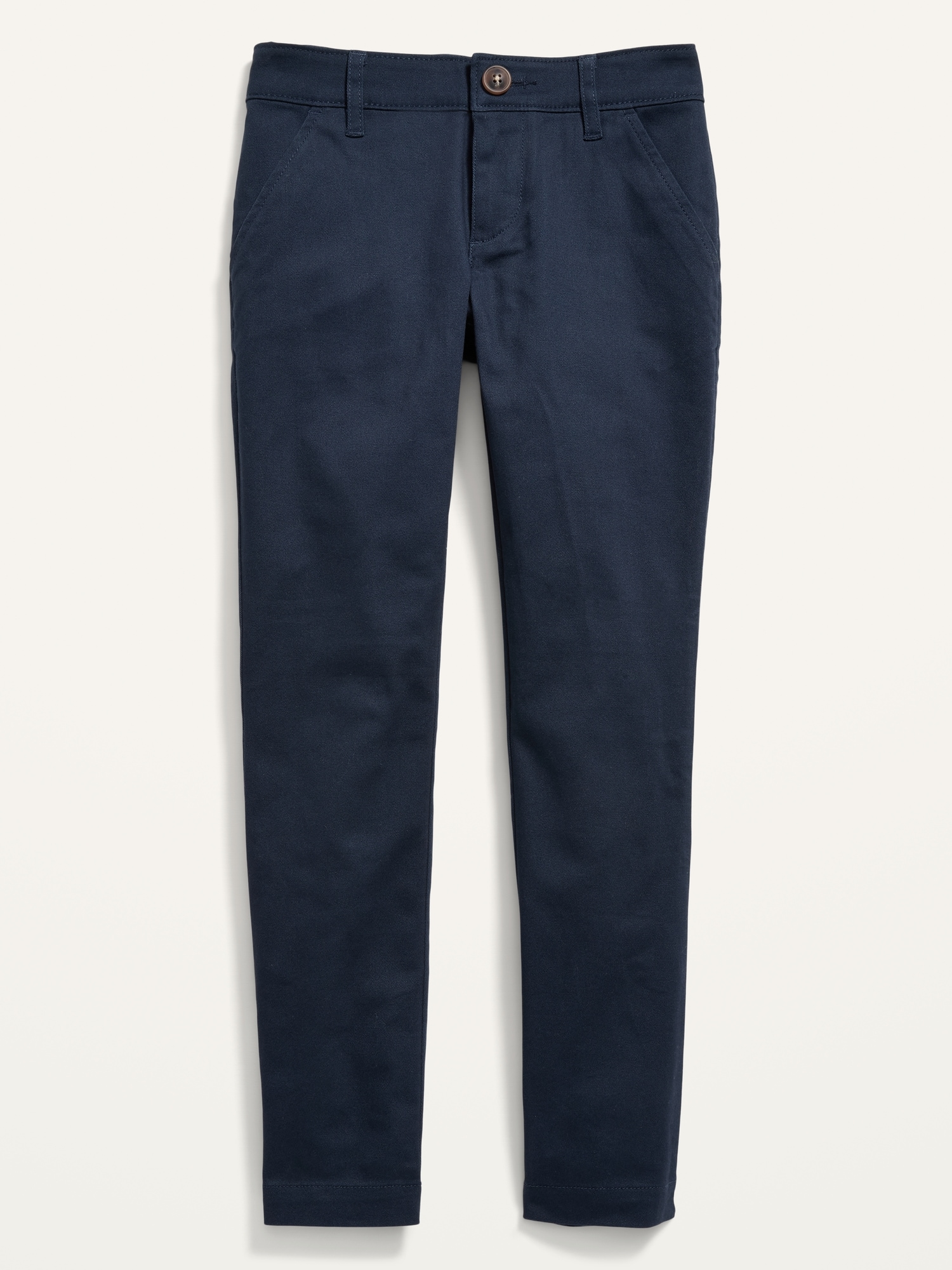 Skinny School Uniform Pants for Girls: Uniform Guarantee: Uniforms may be returned for a full refund with the original receipt for 365 days from the date of purchase.interior adjustable waistband expands, snap-button closure in sizes 5-8, regular button closure in sizes 10-20, zip fly, flat front, diagonal on-seam pockets, decorative welt faux pockets in back, #877990