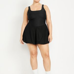 SleekTech Bubble Dress: Featuring SleekTech. Polished and lightweight, with serious stretch.square neck, scoop back, shelf bra, removable pads, go-dry wicks moisture, breathable, #791430