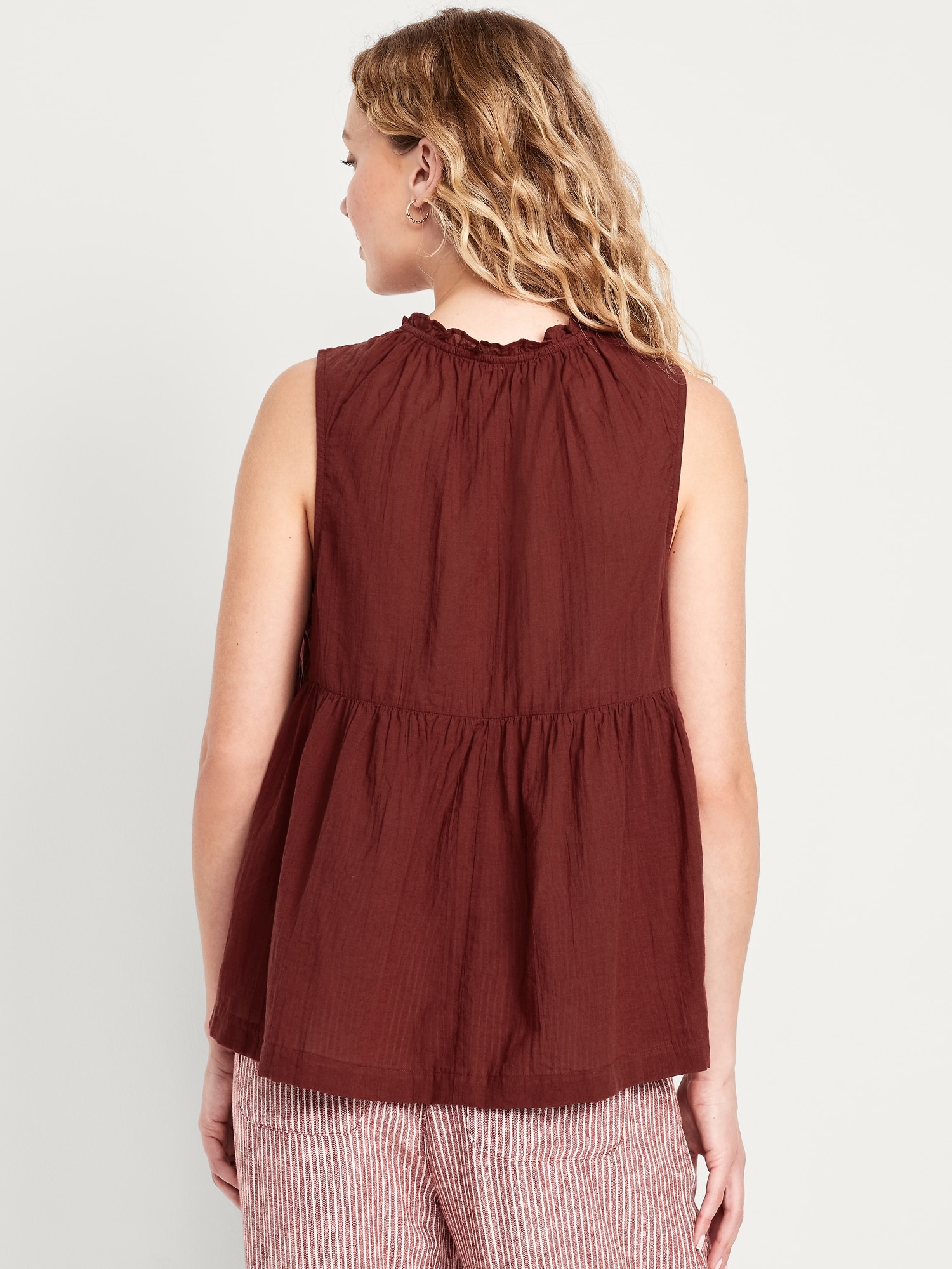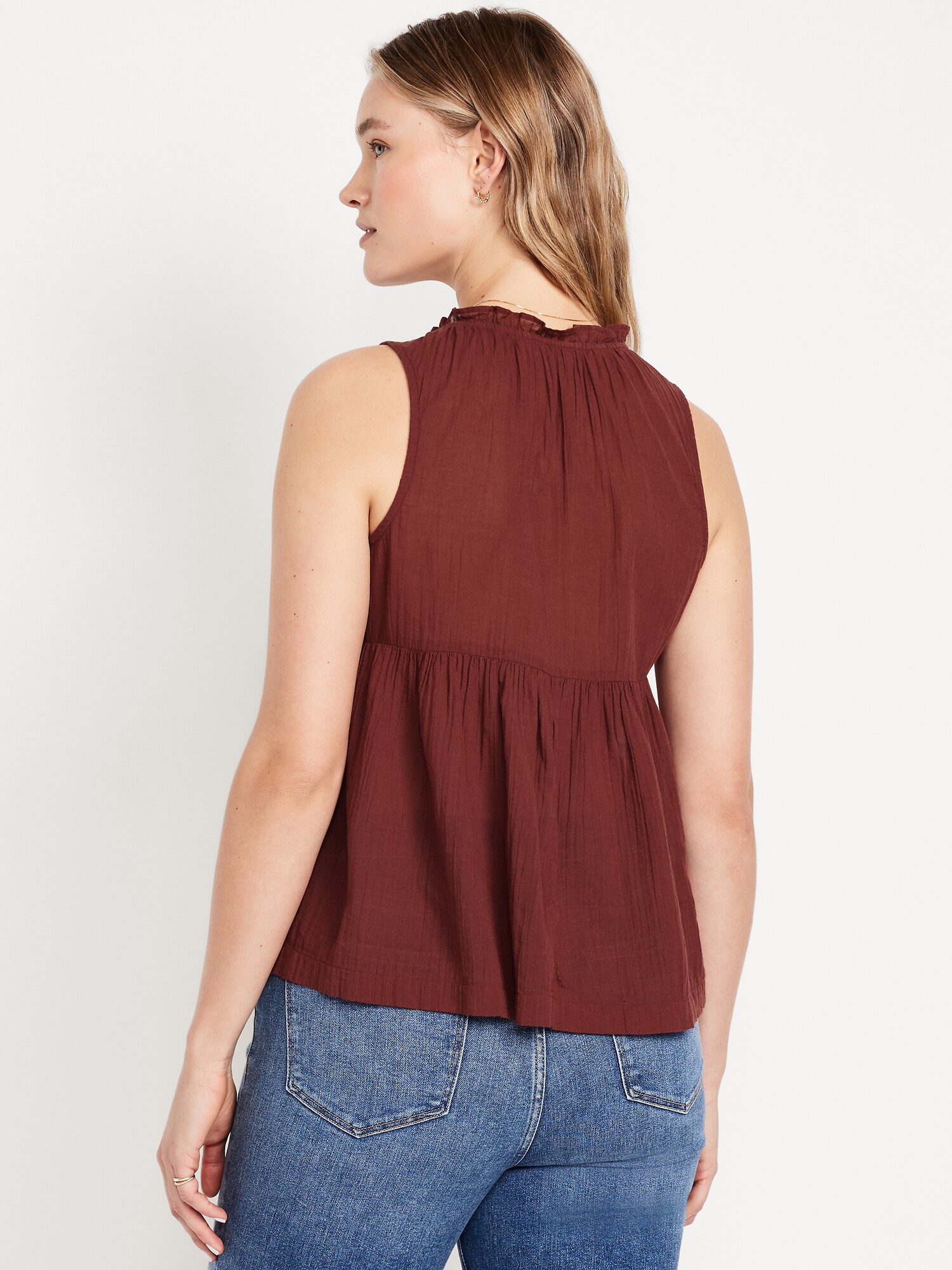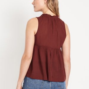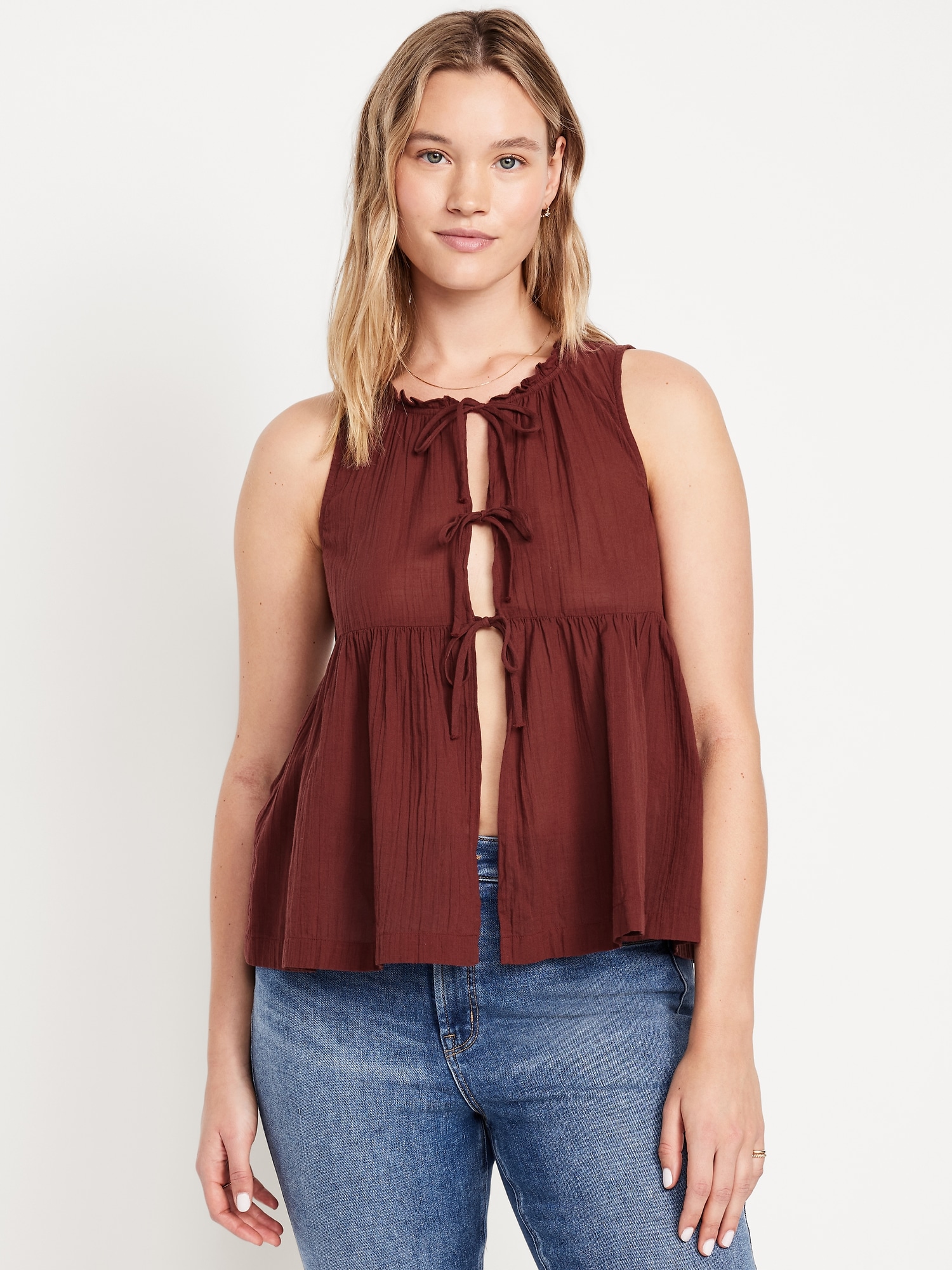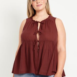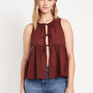 Sleeveless Crinkle Gauze Tie-Front Top