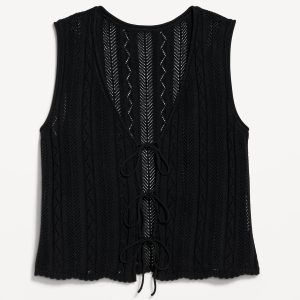 Sleeveless Crochet Tie-Front Top