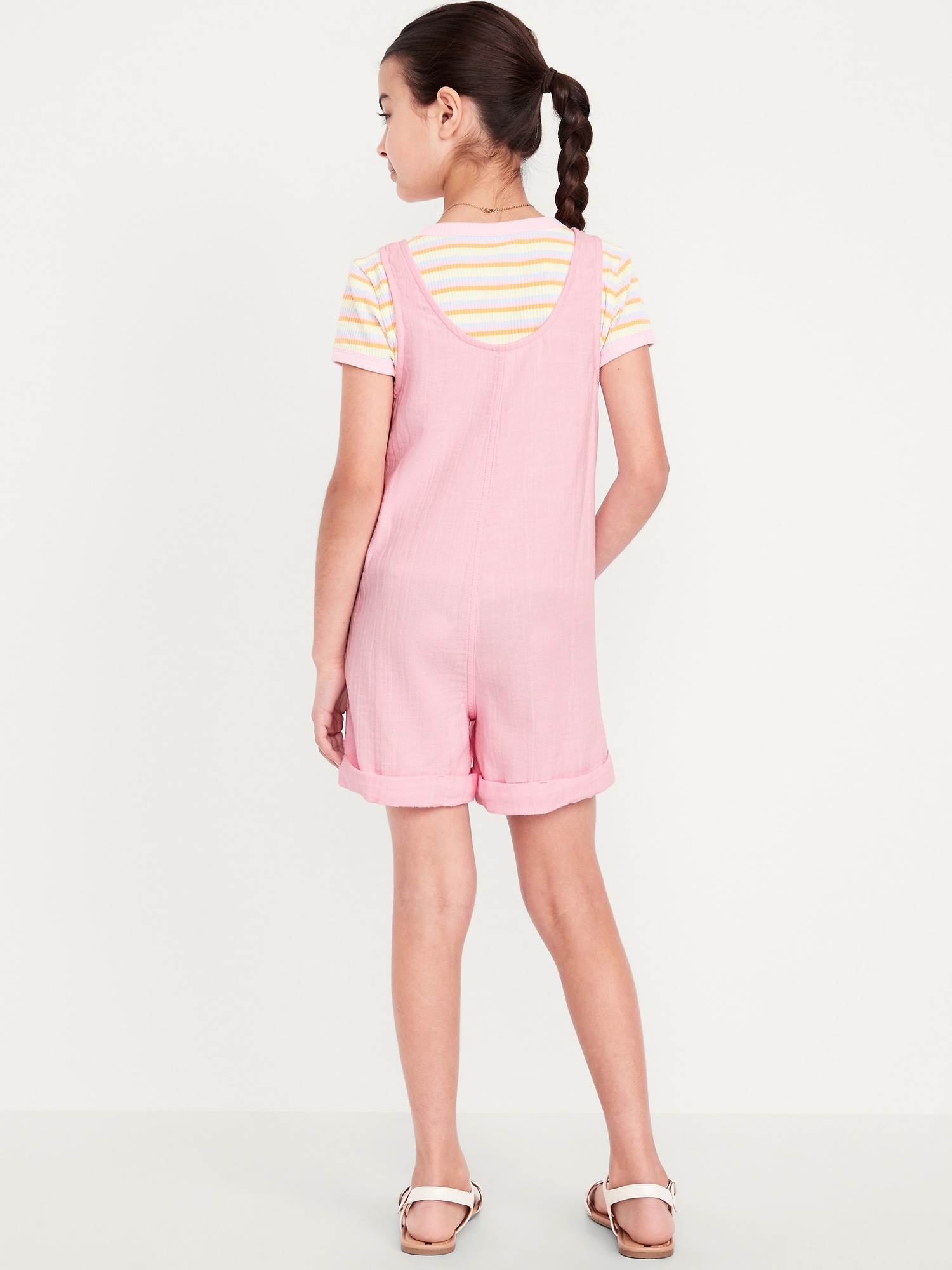 Sleeveless Double-Weave Pocket Romper for Girls