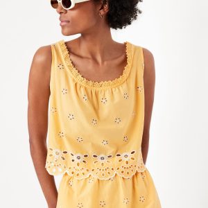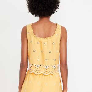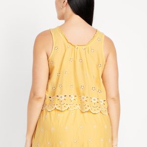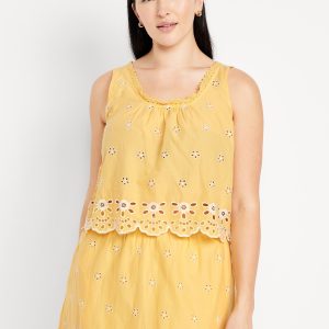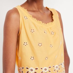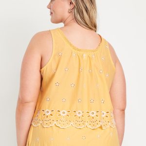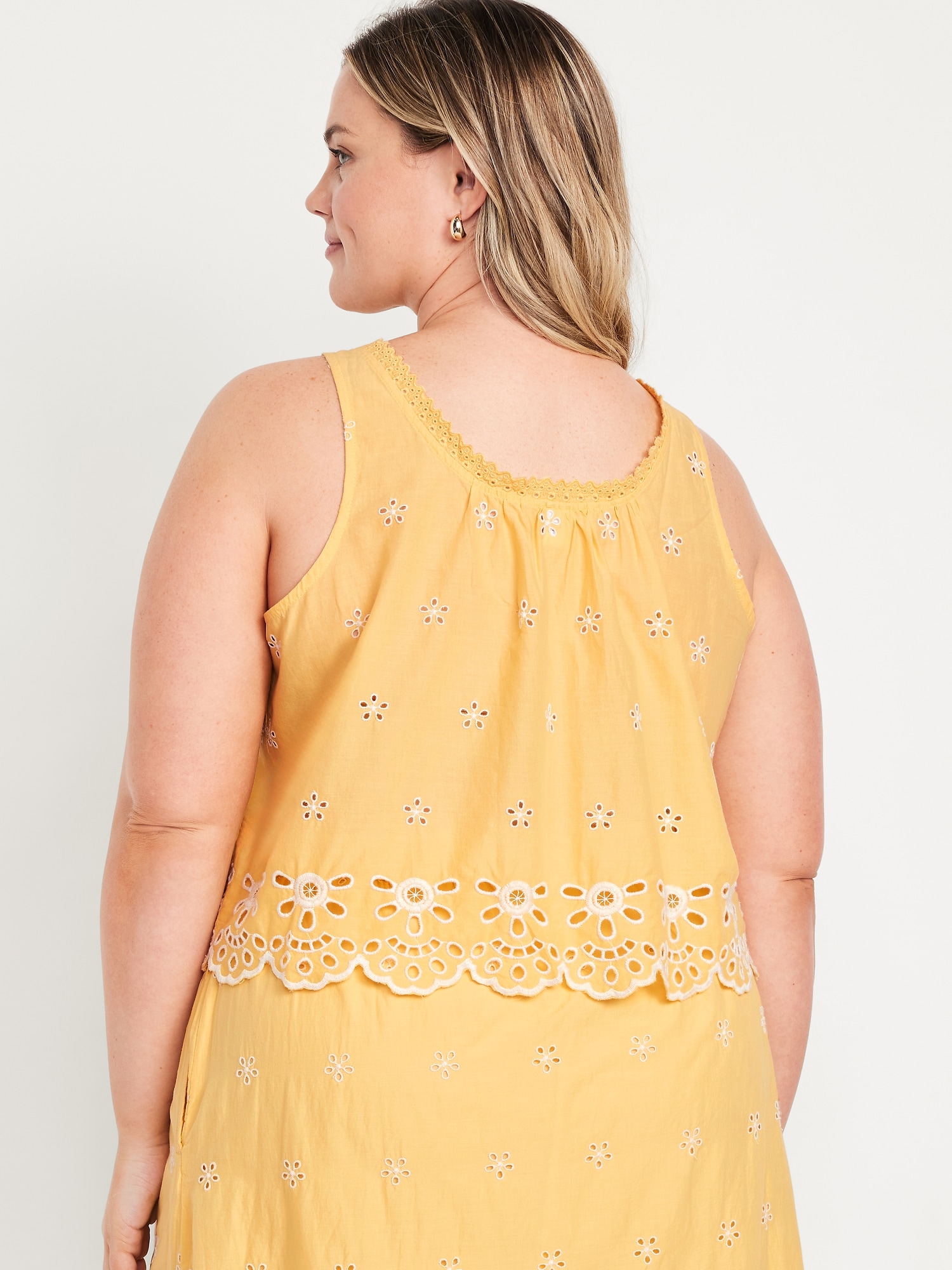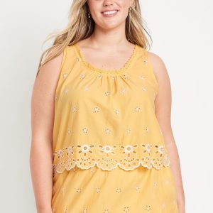 Sleeveless Eyelet Top: lace-trim scoop neck, eyelet detail, scallop hem, #704096