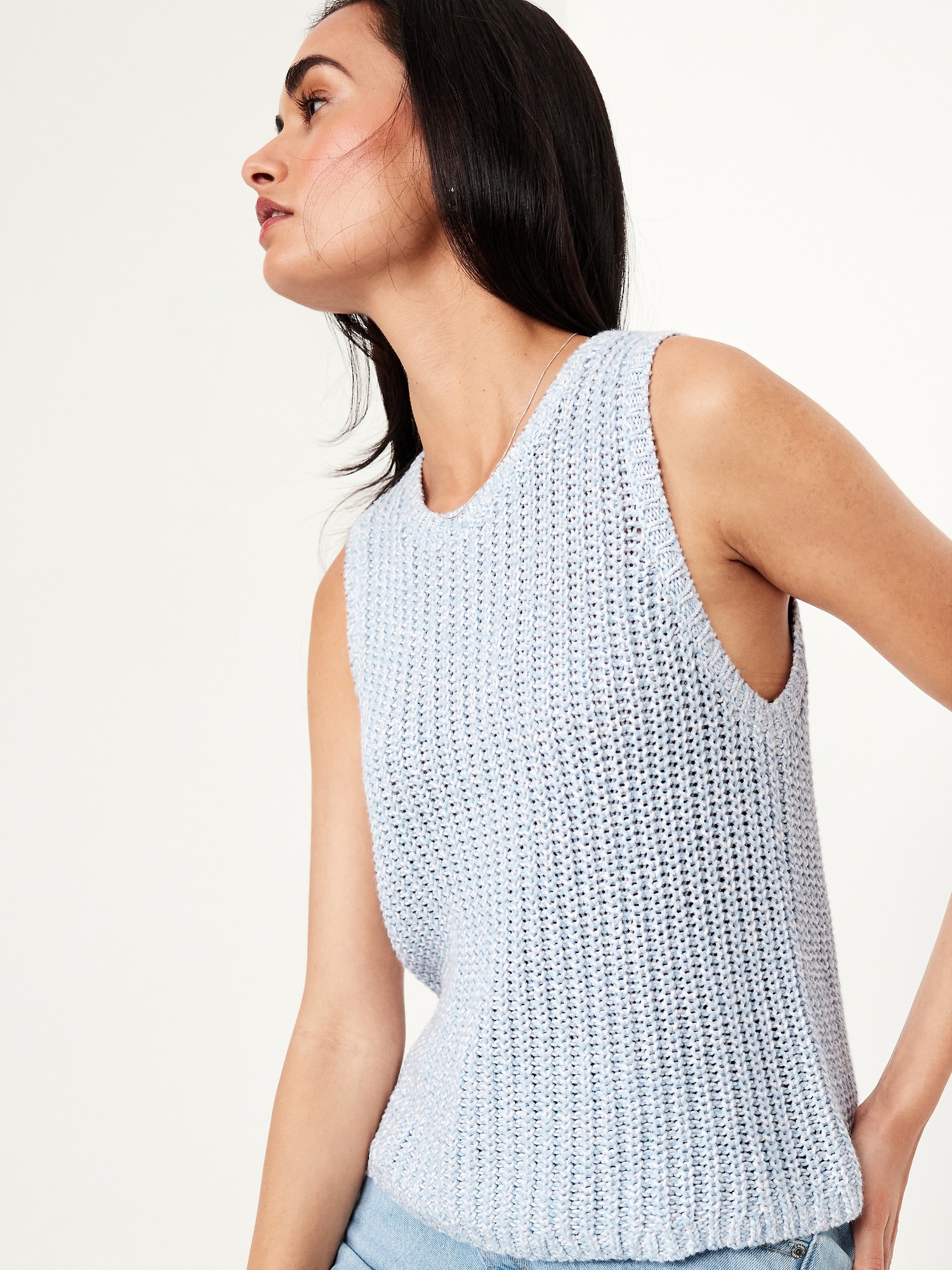 Sleeveless Open-Stitch Sweater: crew neck, sleeveless, pullover style, #664151