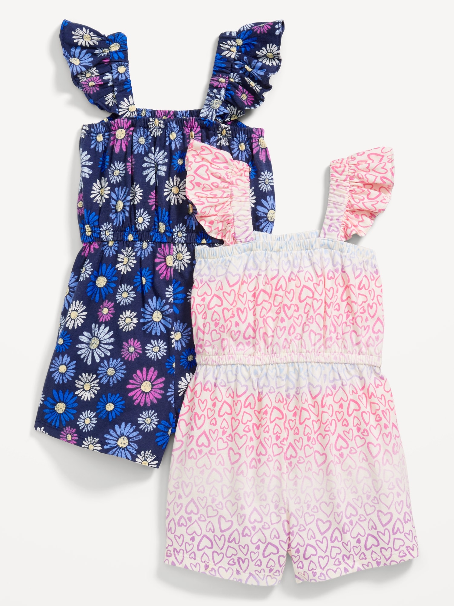 Sleeveless Ruffle-Trim One-Piece Romper 2-Pack for Toddler Girls