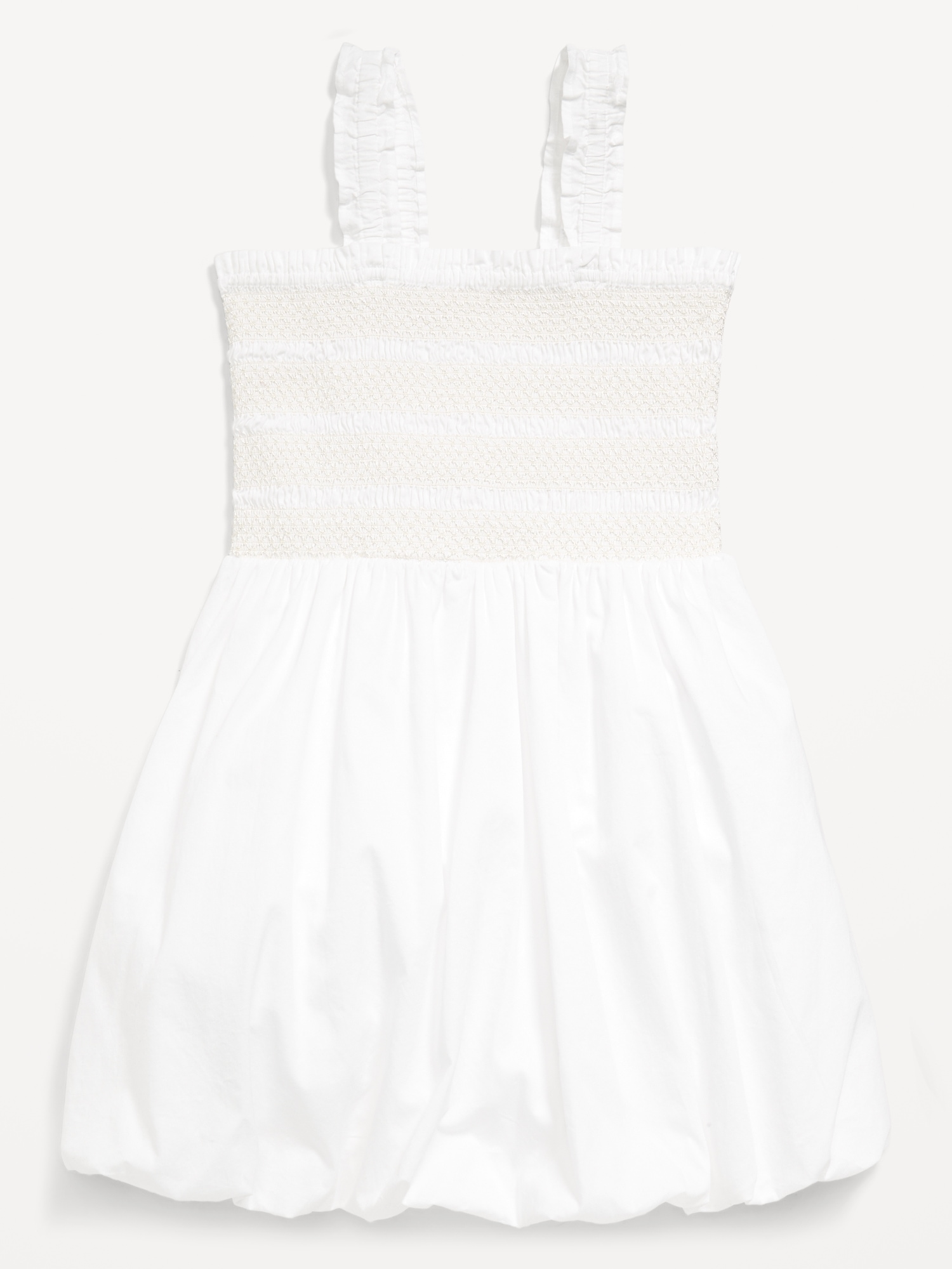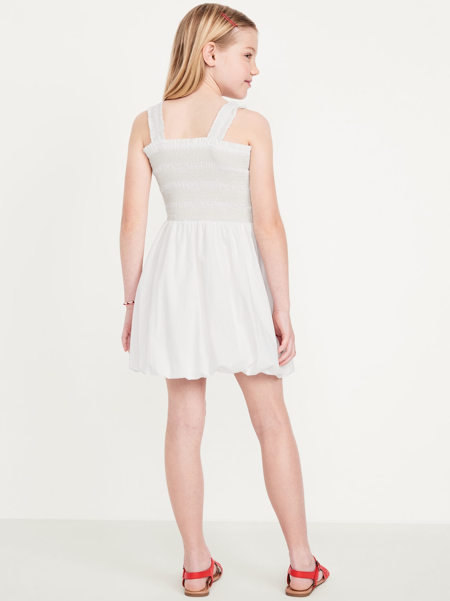 Sleeveless Smocked Bubble Dress for Girls: square neckline, wide shoulder straps, smocked bodice, full bubble skirt, #766652