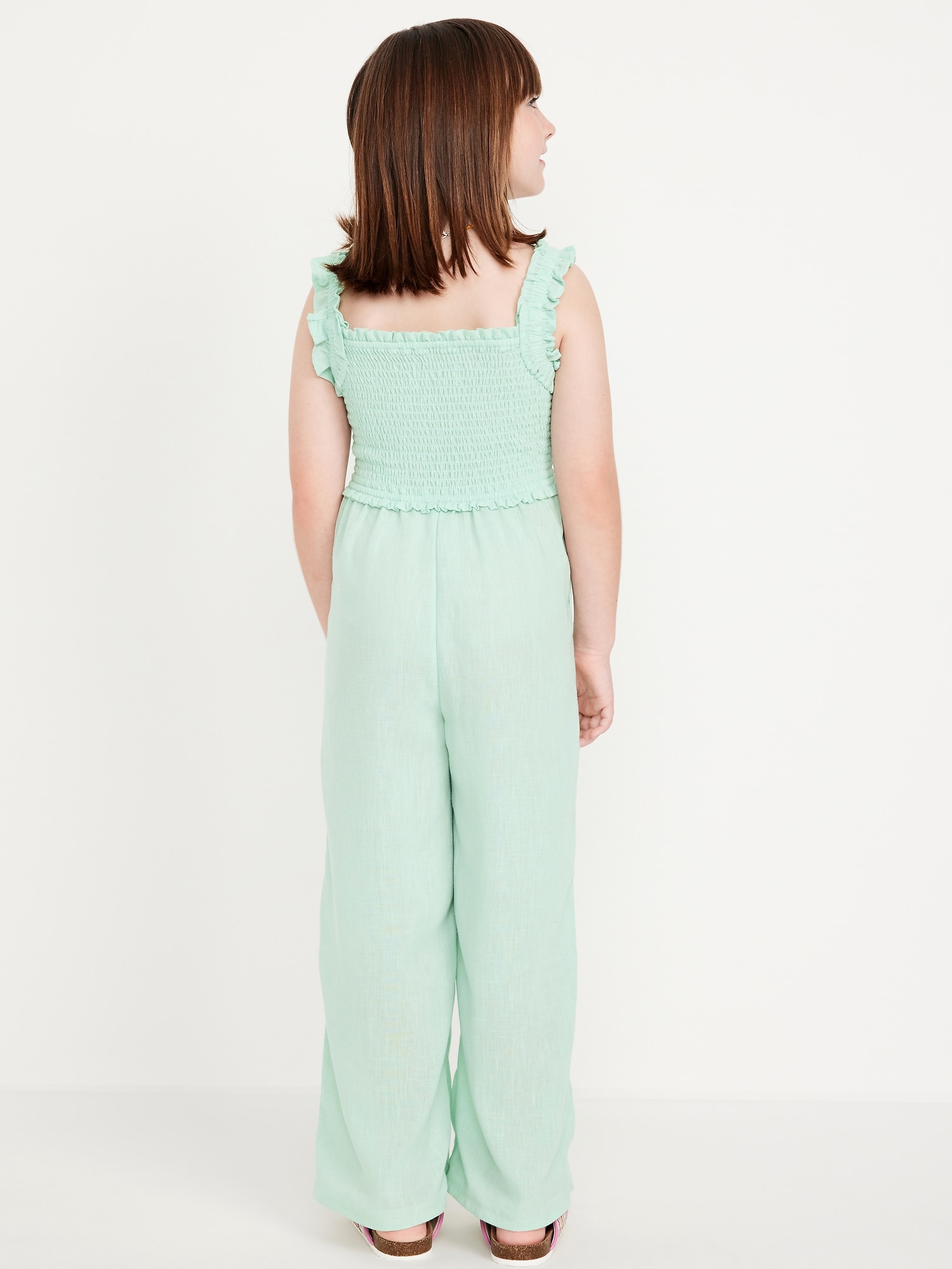 Sleeveless Smocked Ruffle-Trim Jumpsuit for Girls