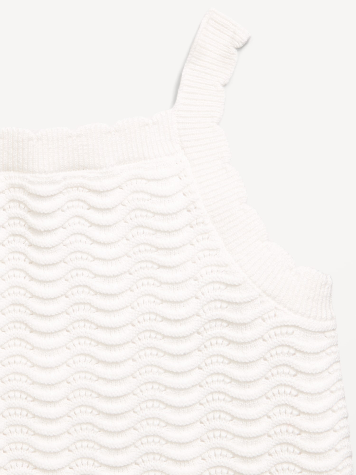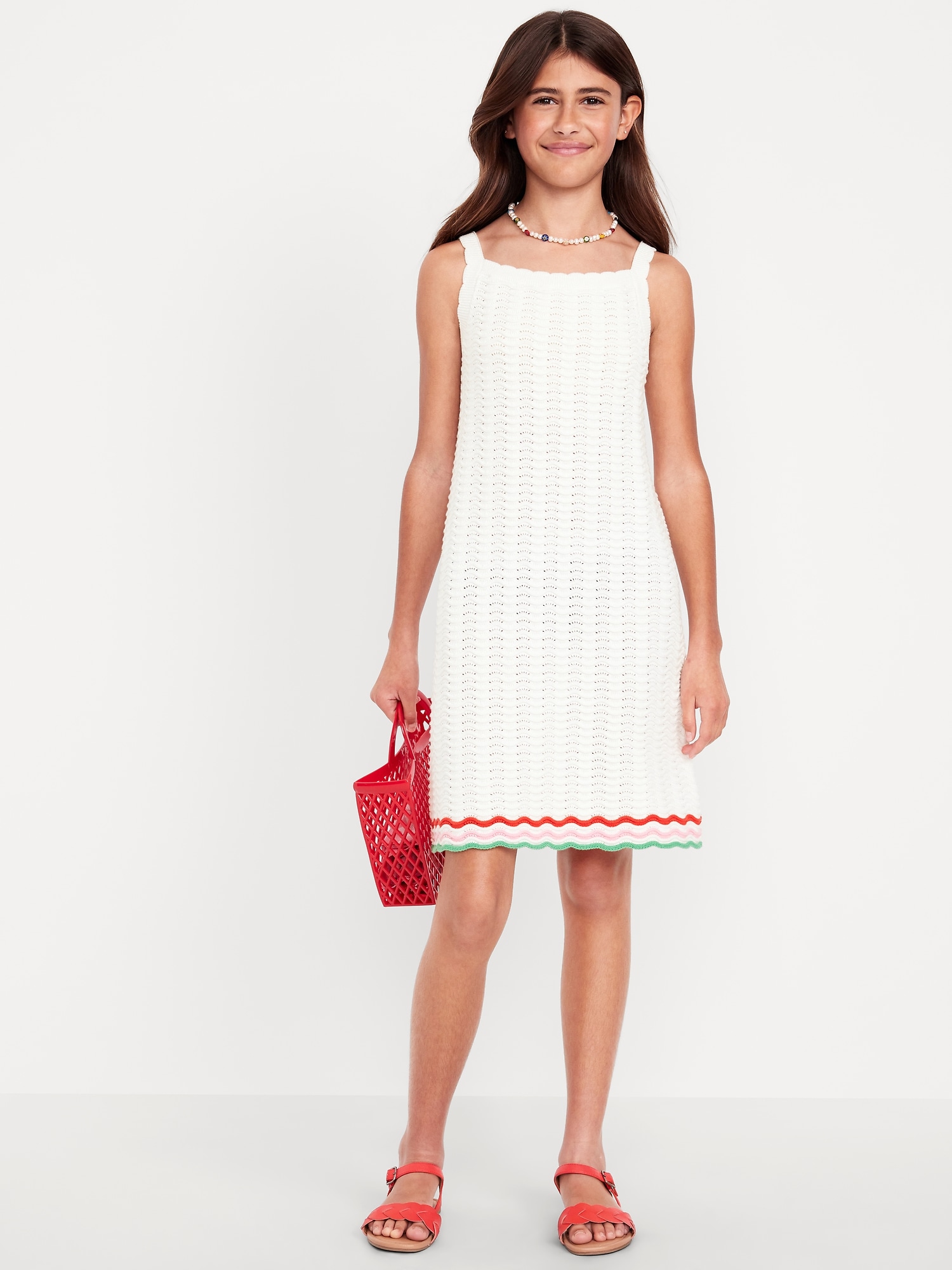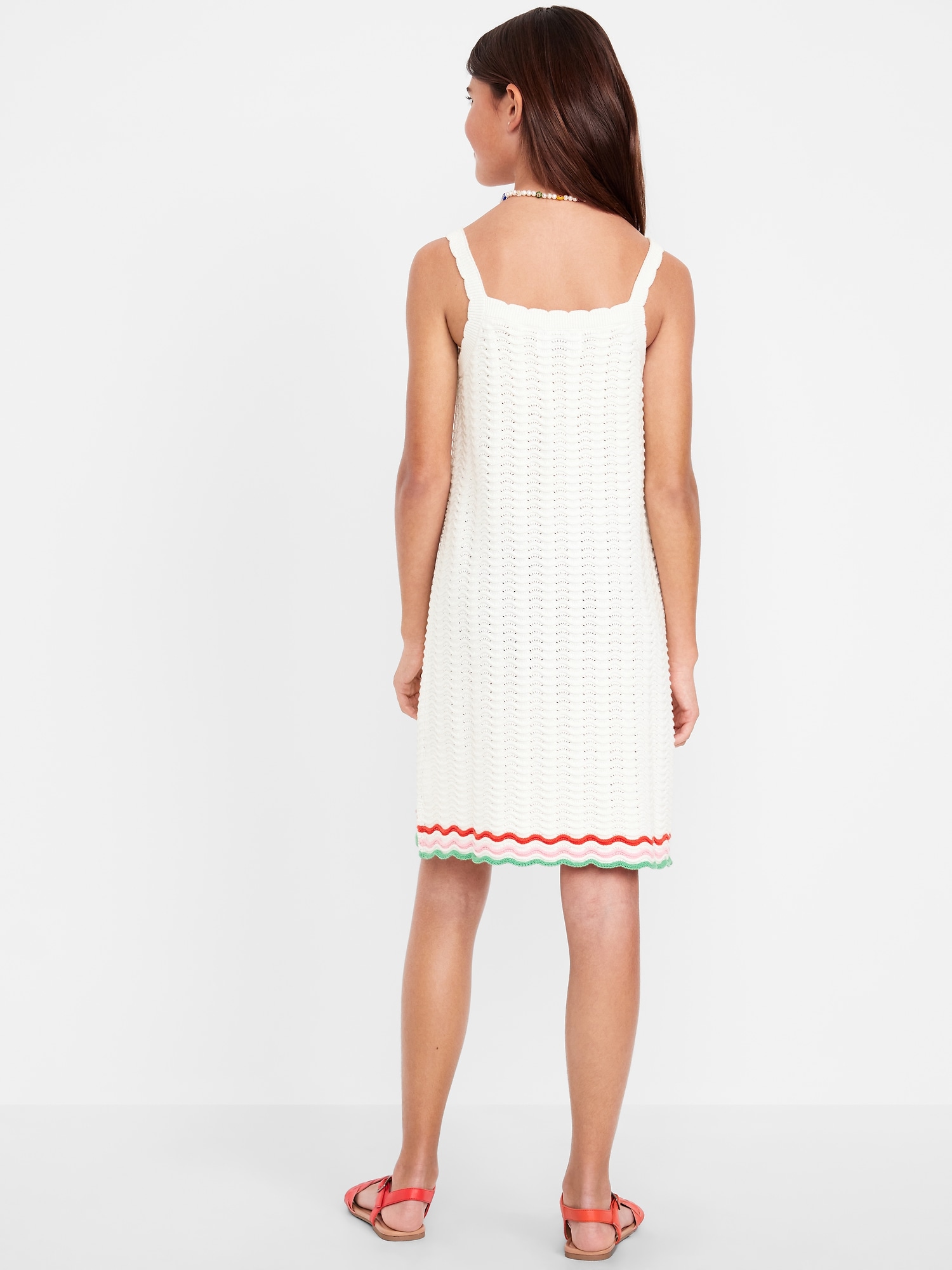 Sleeveless Sweater-Knit Dress for Girls: square neckline, wide shoulder straps, pointelle knit, zig zag trim at hem, #766669