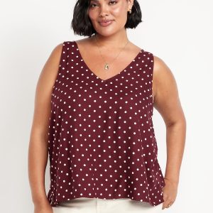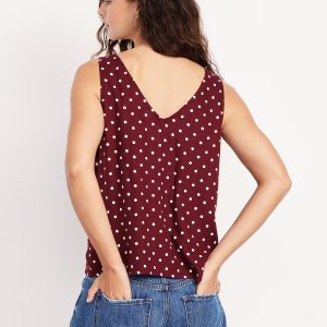 Sleeveless V-Neck Crepe Top: v-neck and v-back, wide straps, #805743