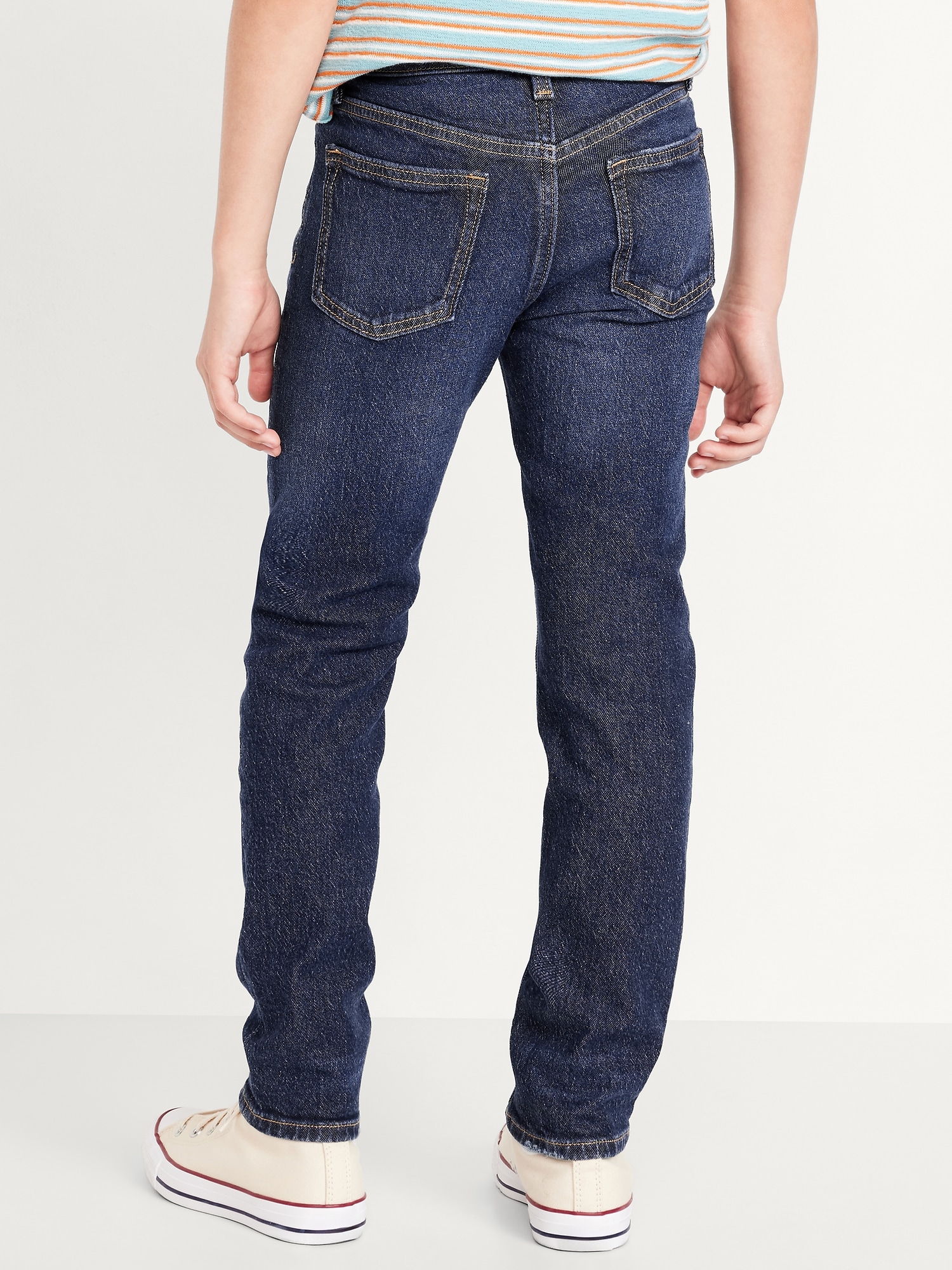 Slim 360° Stretch Jeans for Boys: Comfy, durable, wear-on-repeat faves.interior adjustable waistband, snap-button closure in sizes 5-8, regular button closure in sizes 10-20., zip fly, scoop pockets and coin pocket in front, patch pockets in back, #855367