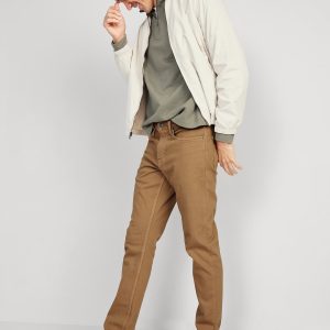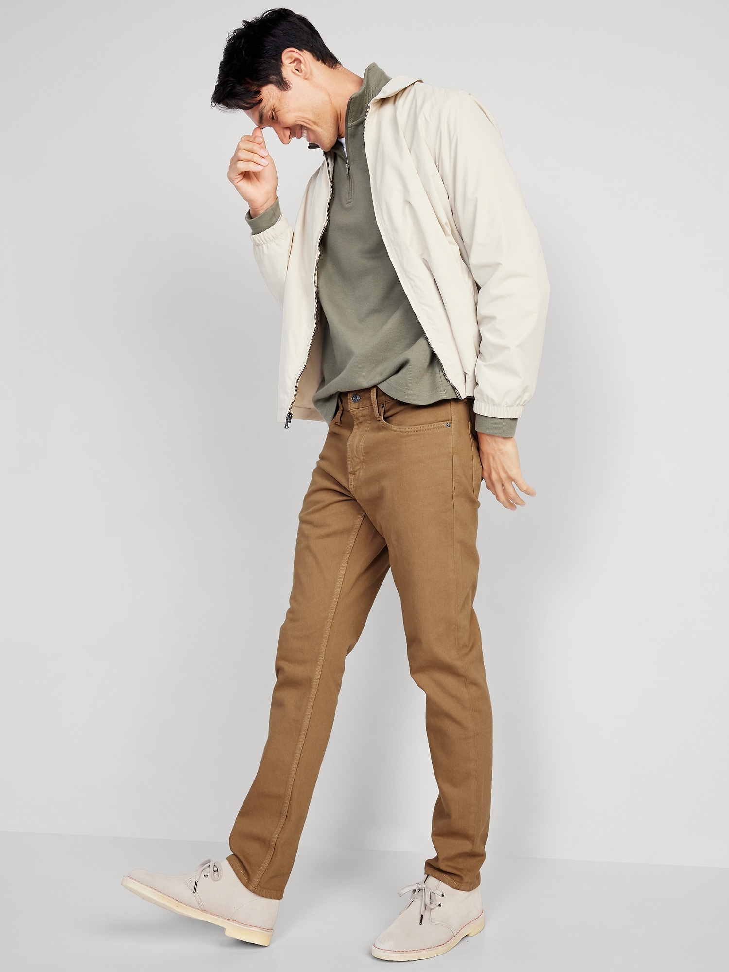 Slim Built-In Flex Five-Pocket Pants: Slim through the hip and thigh, in a soft-washed fabric with a hint of stretch.button front, zip fly, front scoop pockets and coin pocket, back patch pockets, #848863