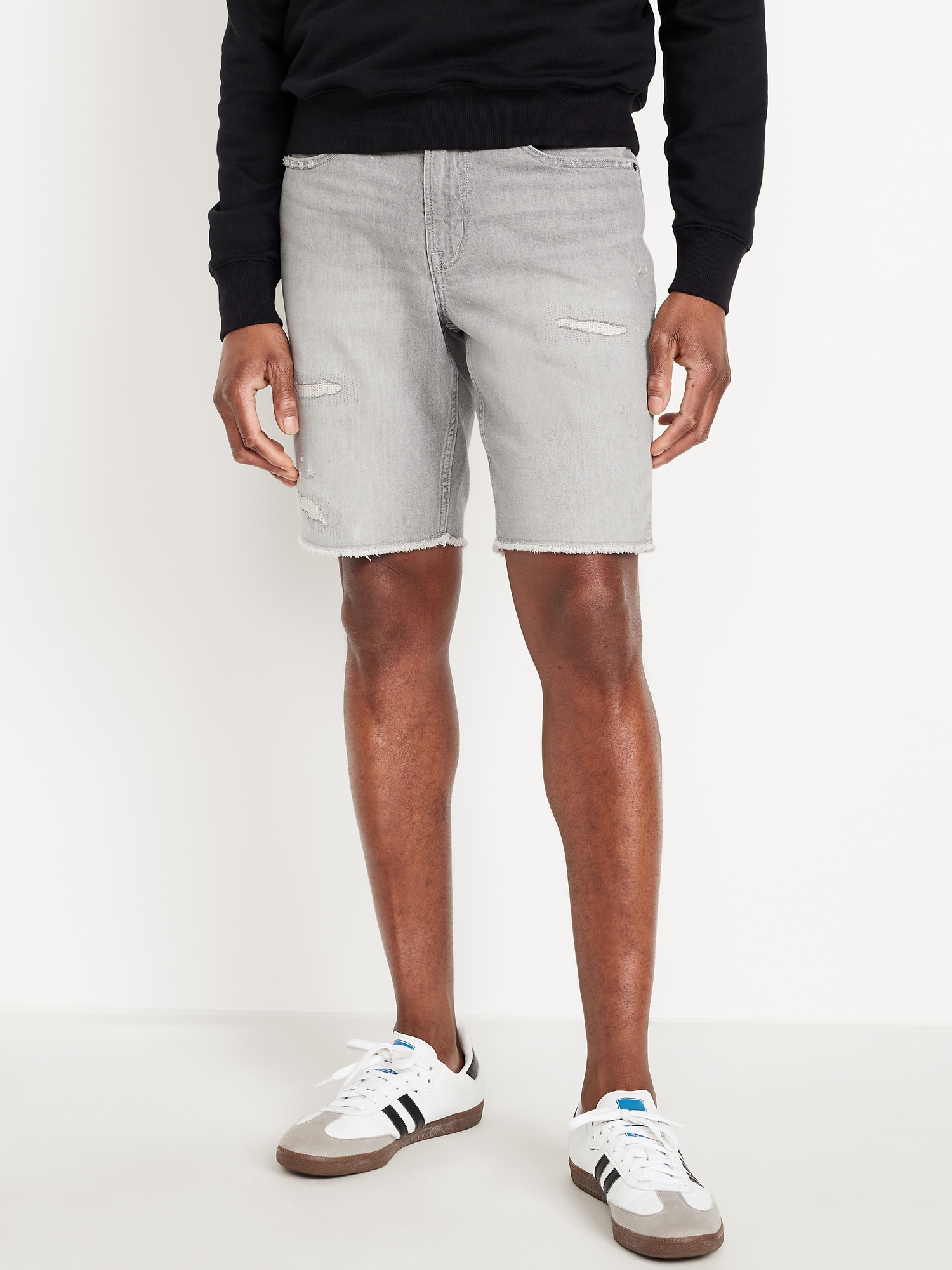 Slim Built-In Flex Jean Raw-Edge Shorts — 9.5-inch inseam