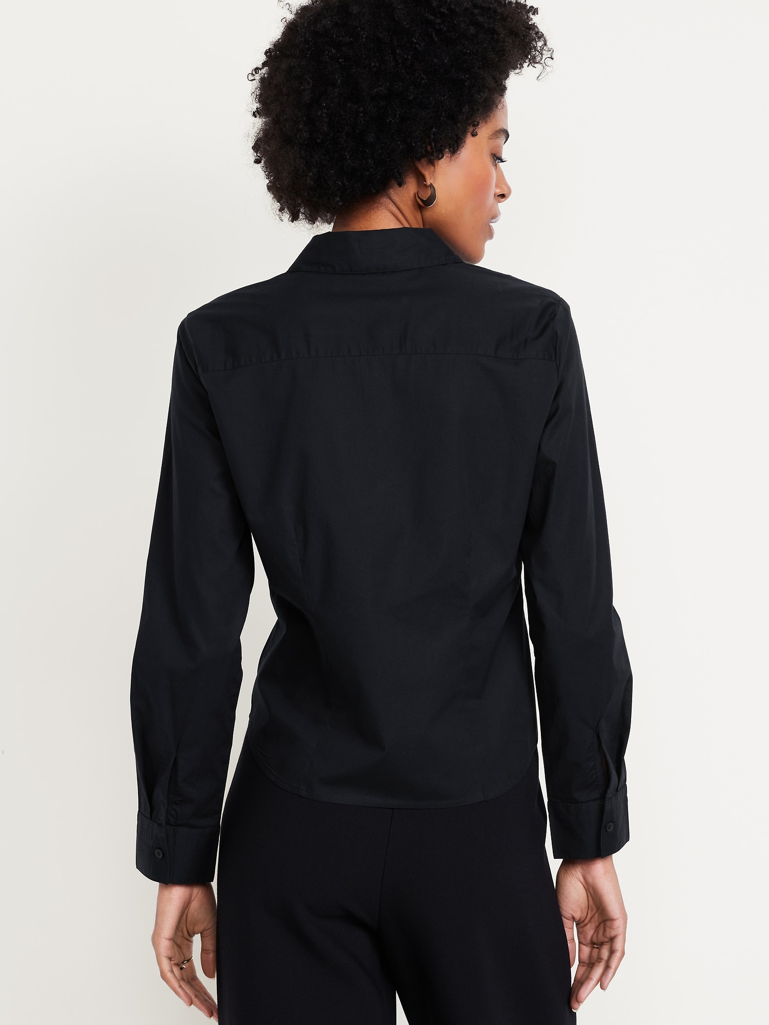 Slim Button-Down Shirt: spread collar, long sleeves, buttoned cuffs, button front, striped print, curved hem, #545902