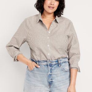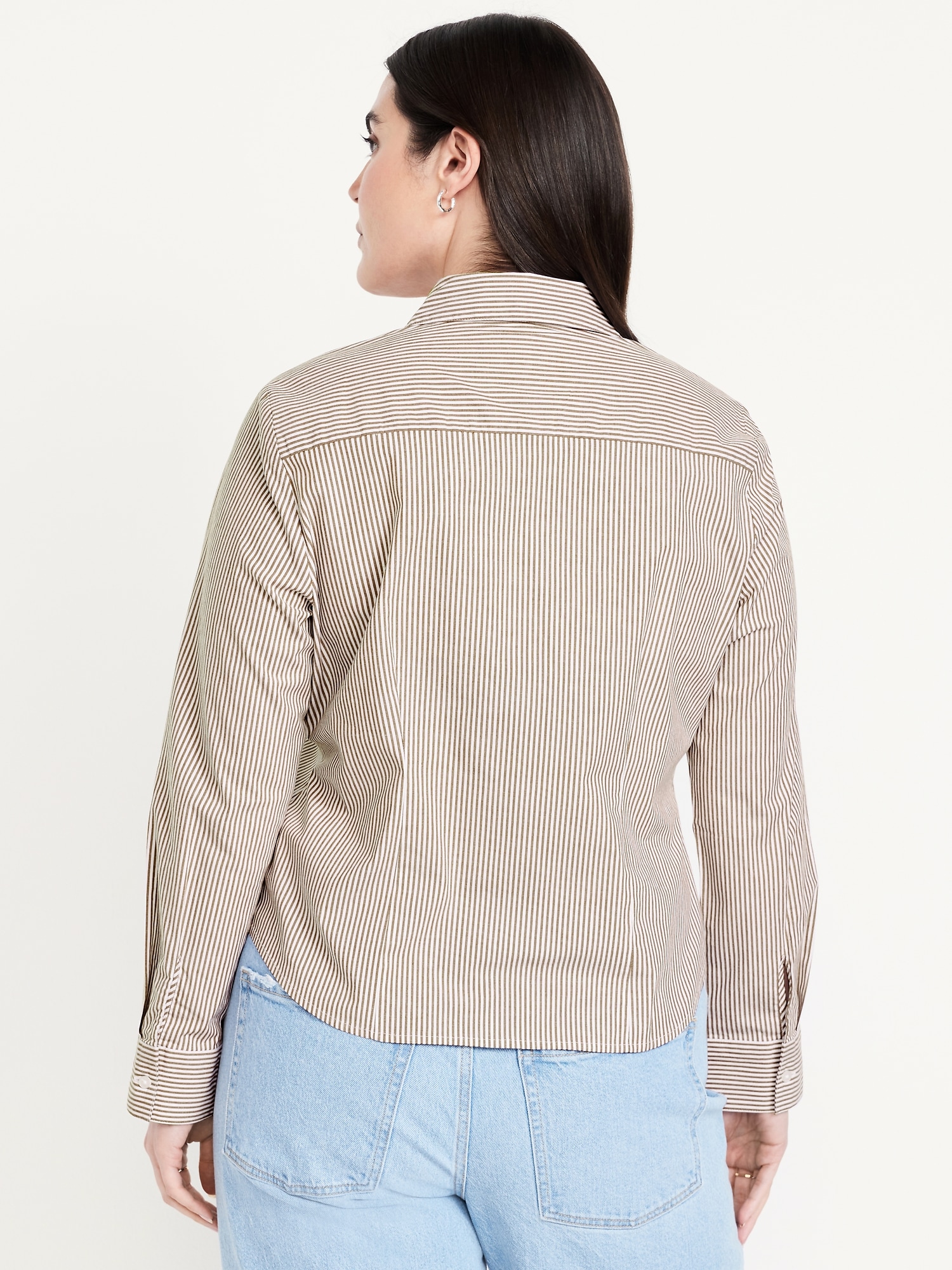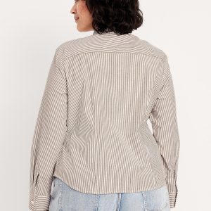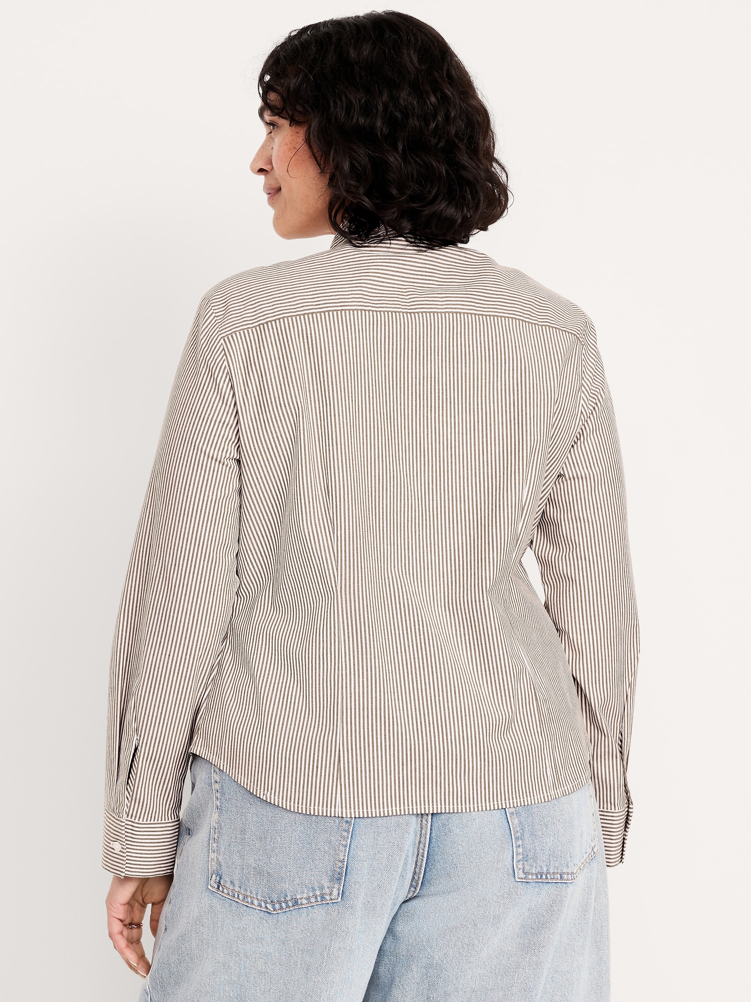 Slim Button-Down Shirt: spread collar, long sleeves, buttoned cuffs, button front, striped print, curved hem, #545902