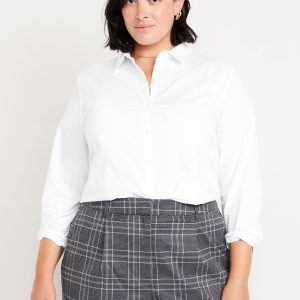 Slim Button-Down Shirt: spread collar, long sleeves, buttoned cuffs, button front, striped print, curved hem, #545902
