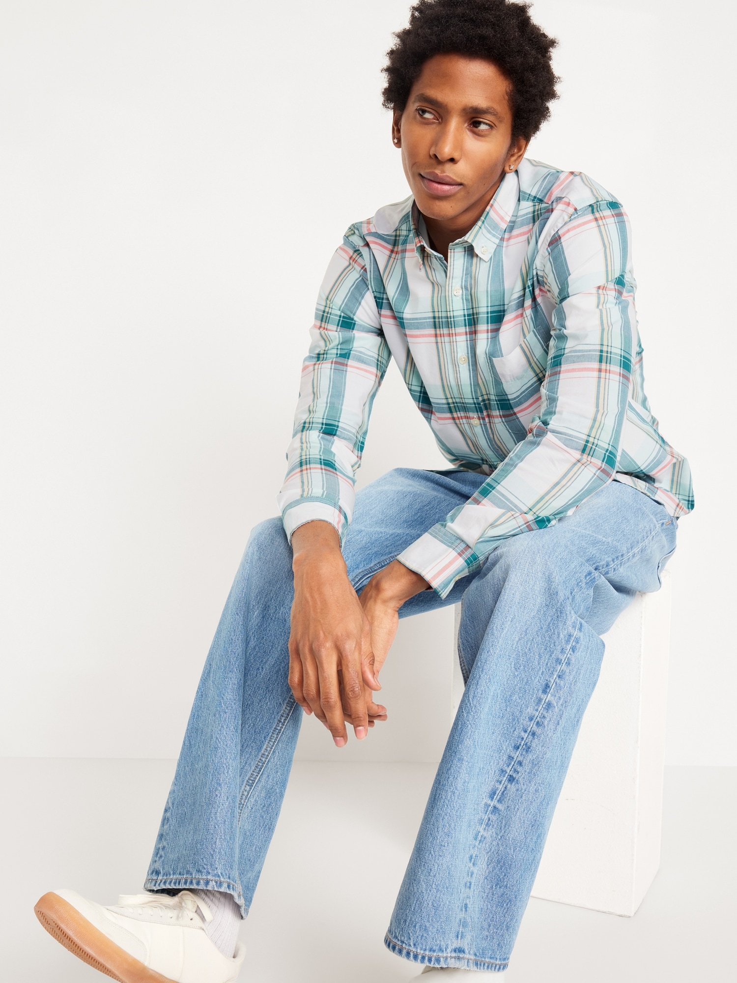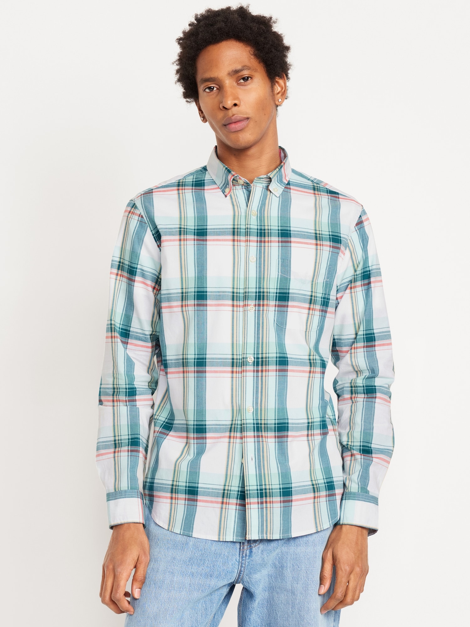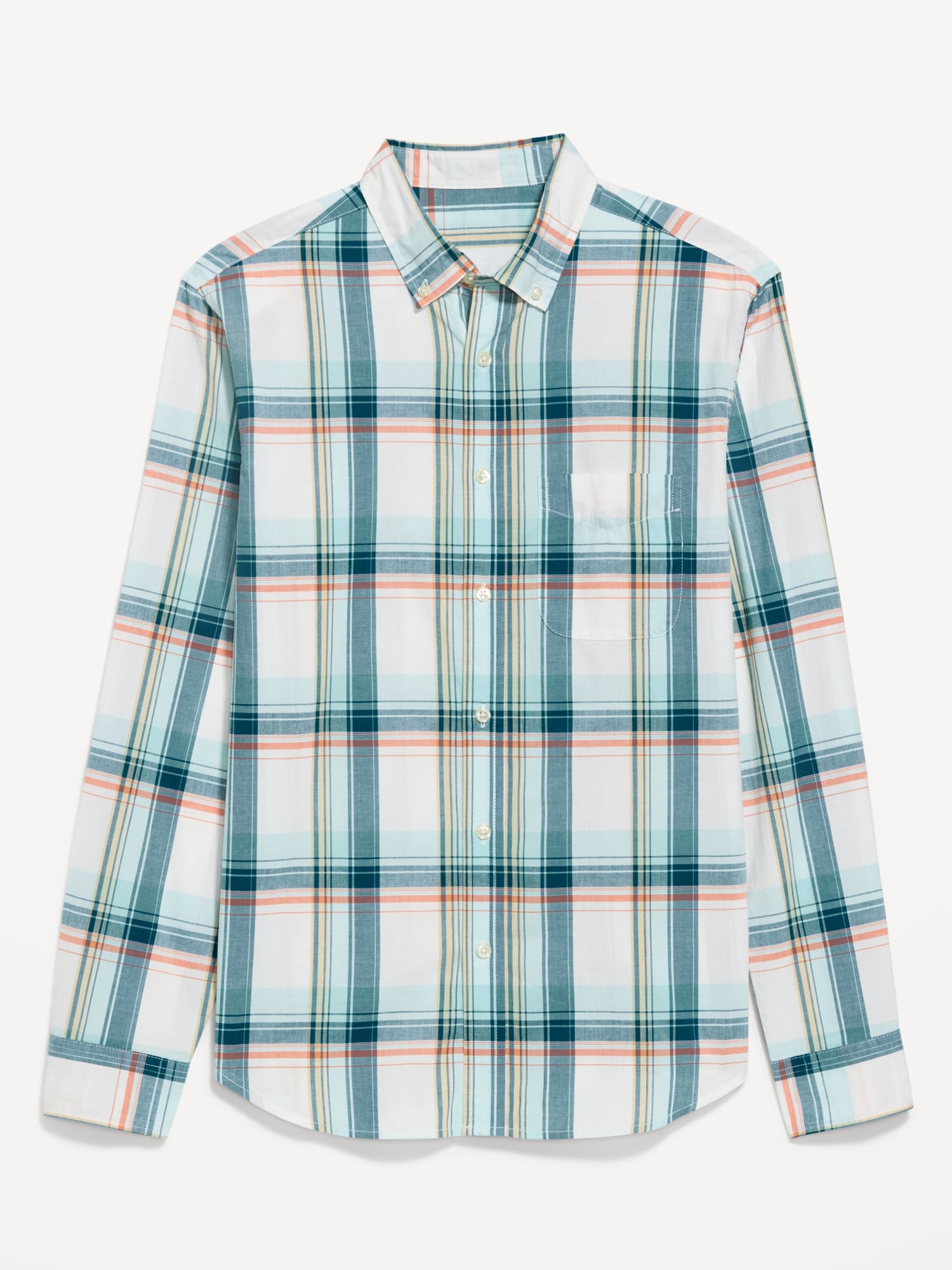 Slim Fit Printed Everyday Shirt: The Everyday Shirt is the button-down that puts in work eight days a week.spread button-down collar, long sleeves with buttoned cuffs, full-button front, patch chest pocket, vertical stripe or plaid print, #802077