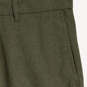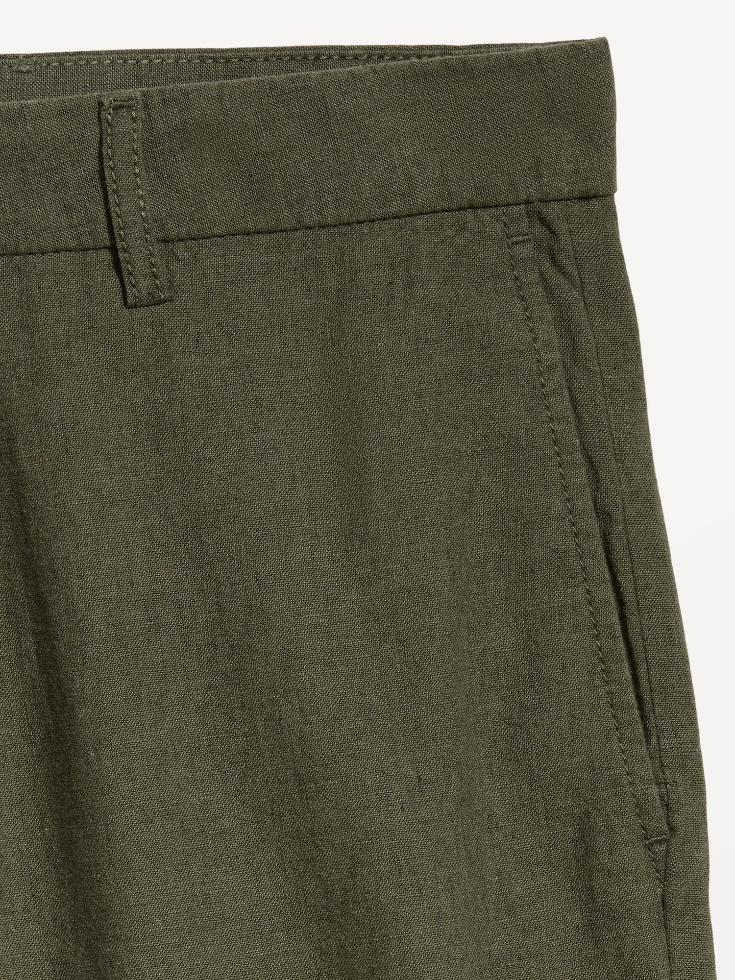 Slim Rotation Linen-Blend Chino Shorts — 8-inch inseam: button front, belt loops, zip fly, on-seam pockets, back welt pockets with button closure at left, #845880
