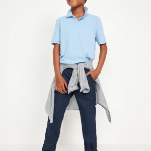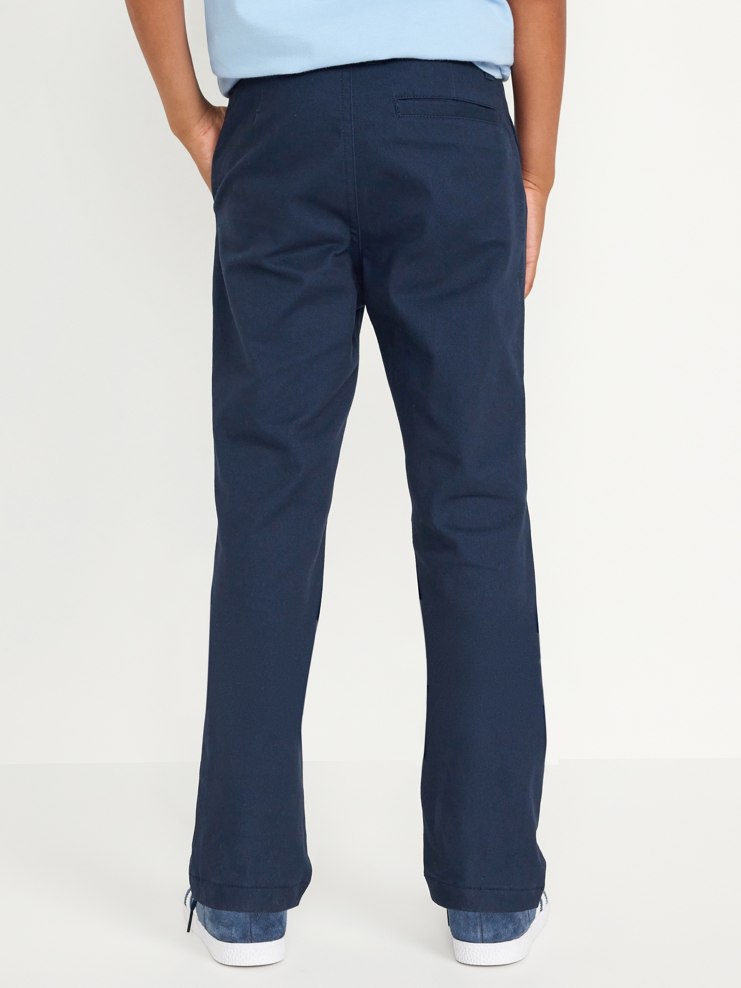 Slim School Uniform Chino Pants for Boys: Uniform Guarantee: Uniforms may be returned for a full refund with the original receipt for 365 days from the date of purchase.interior adjustable waistband, hook-and-bar closure in sizes 5-8, regular button keyhole closure in sizes 10-20, zip fly, diagonal on-seam pockets at front, welt pocket at back, reinforced knees for added durability, #665608