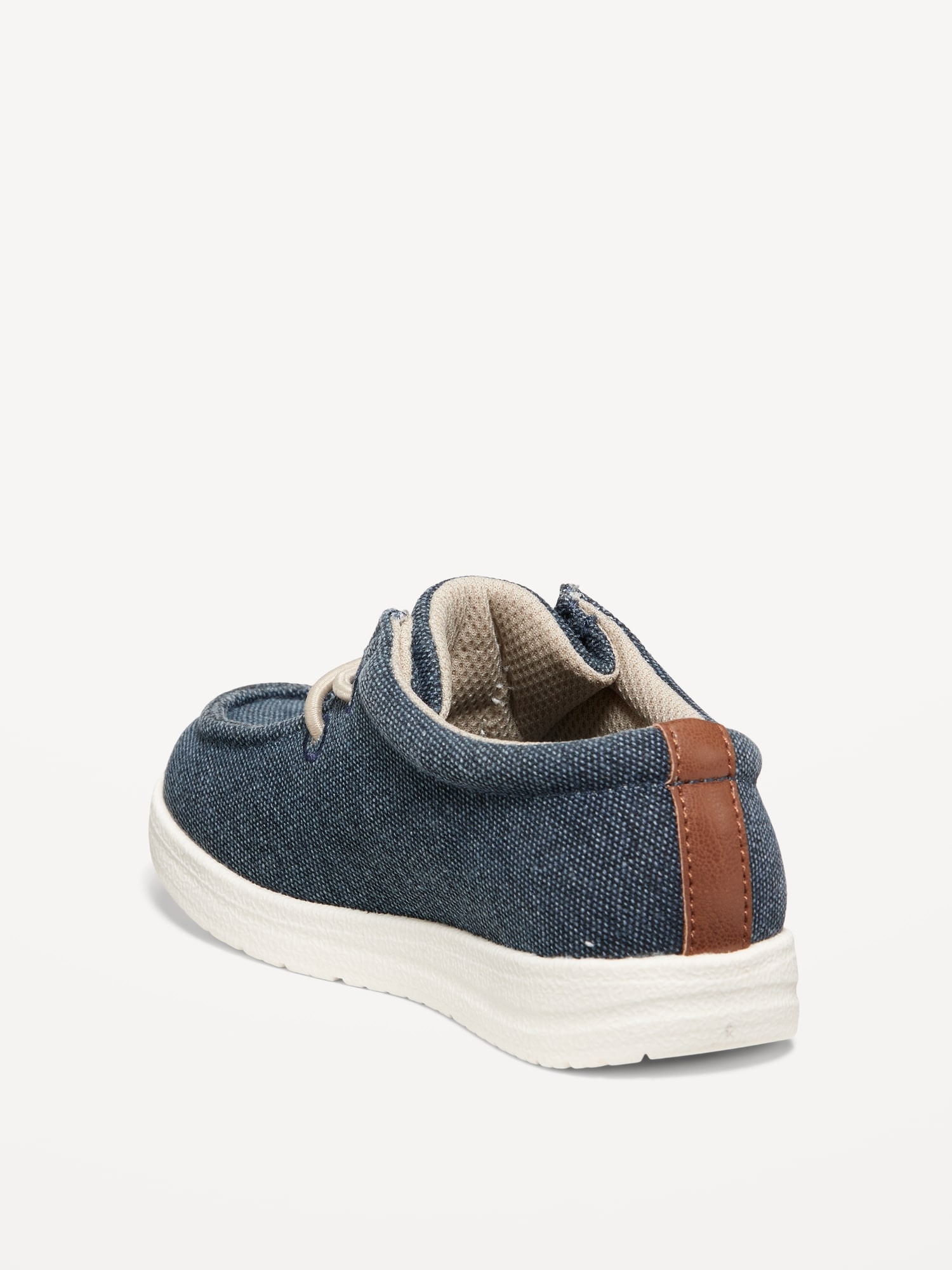 Slip-On Deck Shoes for Toddler Boys: elastic lace-up front, faux-leather piece at tongue, cushioned foot bed, textured synthetic outsole, #688929